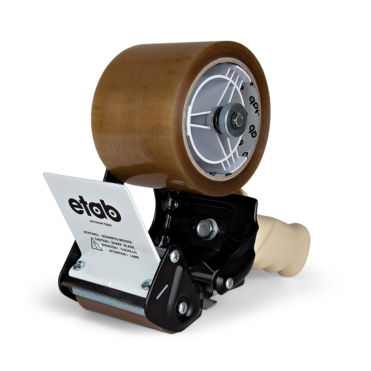 Ergonomisk tejphållare för packtejp. Denna användarvänliga tejphållare är tillverkad av en kraftfull stålkonstruktion med ett ergonomiskt handtag i slagtålig plast samt härdat knivblad som enkelt skär av tejpen till önskad längd. Med justerbar broms som passar lättavrullad tejp. Lämplig för användning i lager och andra situationer där många kartonger ska förseglas. Passar packtejp 75 mm x 66 m.