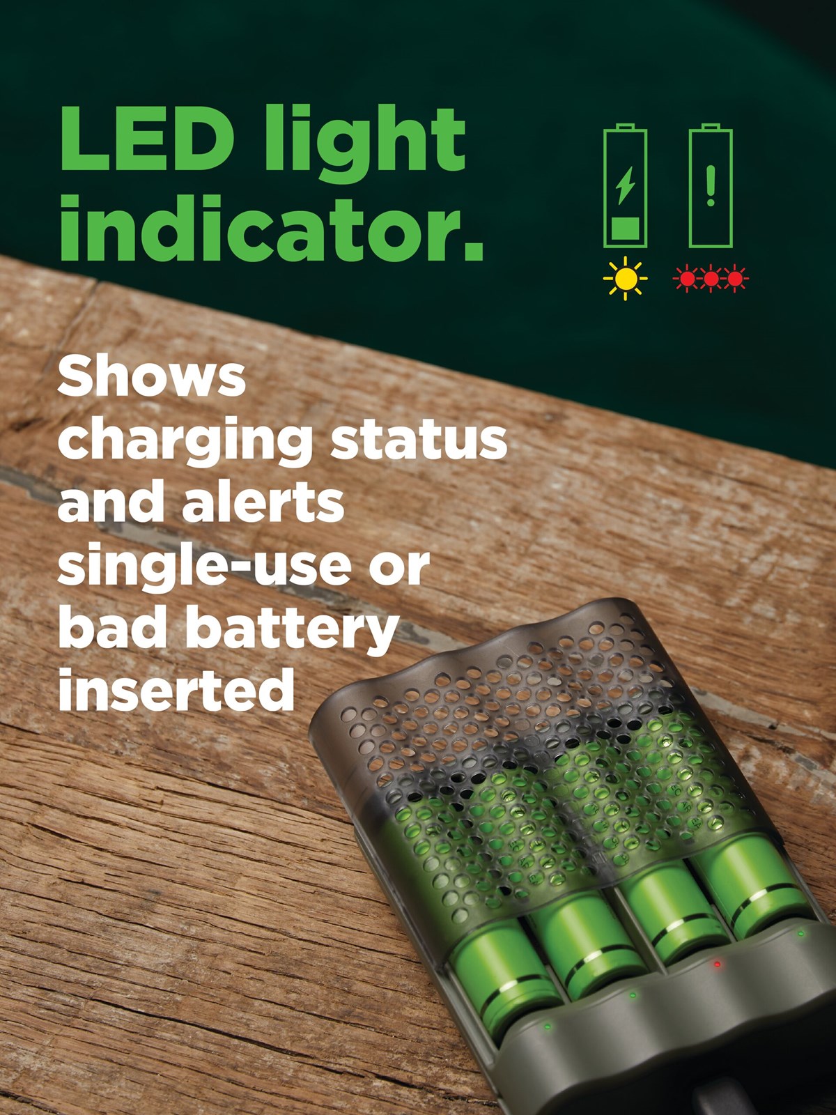 En elegant och snabb batteriladdare med smarta säkerhets- och tekniska funktioner som kan ladda upp till fyra AA- eller AAA-batterier samtidigt. Med sitt perforerade skydd fungerar den även som ett stiligt batterifodral, vilket håller dina batterier skyddade hemma eller när du är på språng.