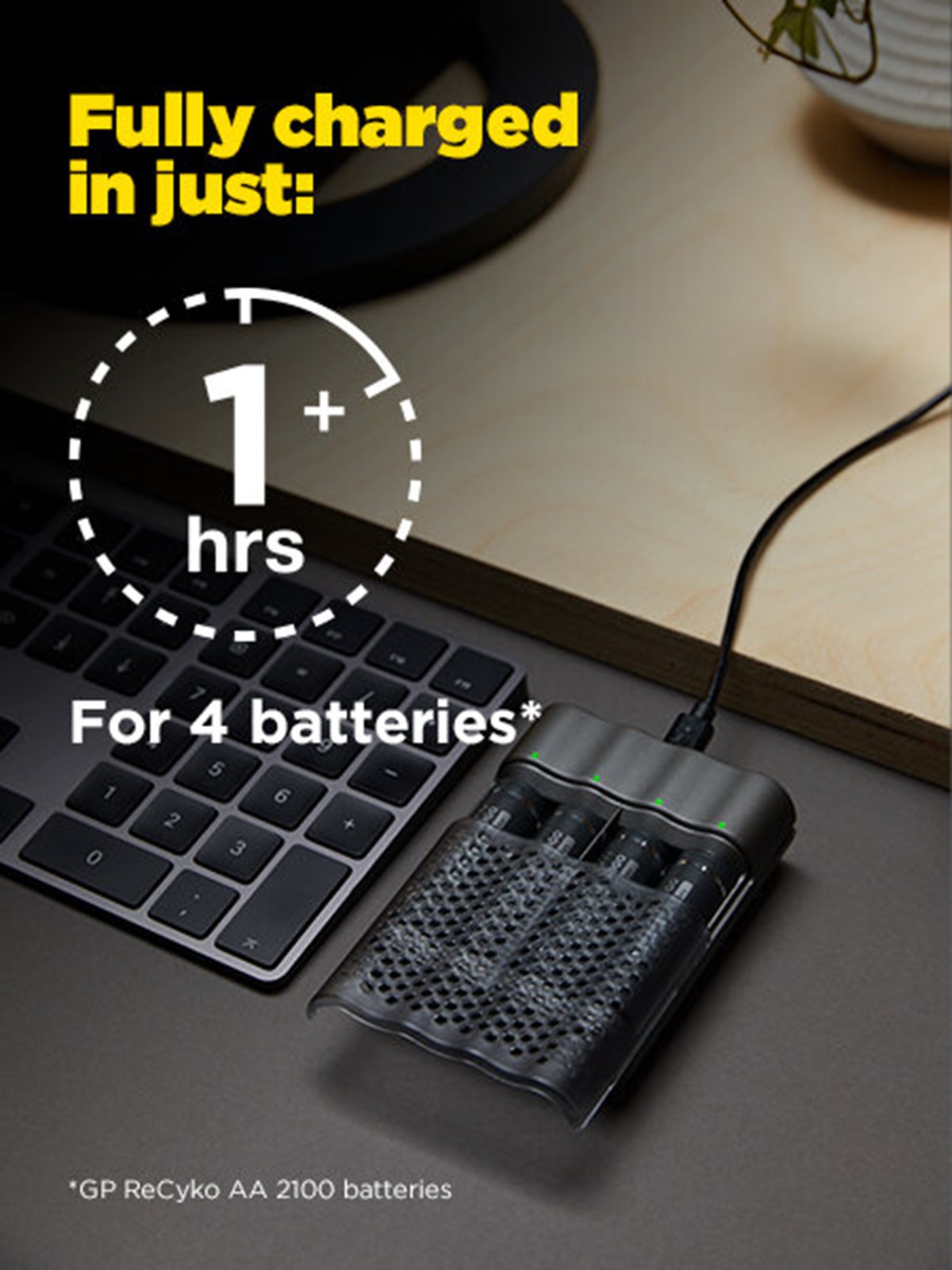 På jobbet, i hemmet eller på resande fot. Med GP Pro Charger Dock är dina batterier alltid redo att användas. Med plats för åtta batterier samtidigt kan du med enkelhet ta med dig exempelvis fyra batterier "to go" och låta resten ligga kvar på samma trygga ställe som du tog dem ifrån. Batteriladdning ska kännas naturlig och Pro Charger Dock underlättar för dig som använder batterier ofta och på flera olika ställen. Den här laddstationen kommer med en Auto Power Cut Of-funktion vilket betyder att du kan låta den sitta kvar i vägguttaget även när batterierna är borttagna eller fulladdade. Laddstationen är tillverkad för att fungera med ReCyko:s FAST- och FASTEST-laddare.