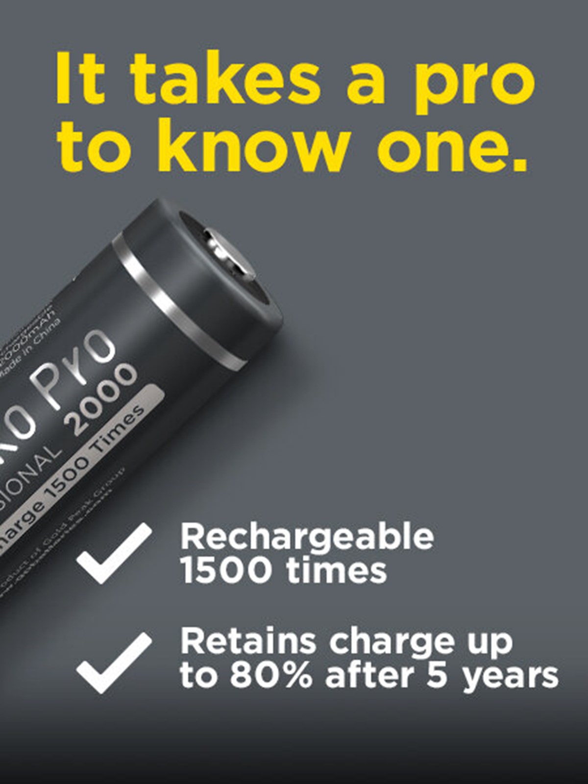 Ingår: 2 ReCyko Pro Snabbladdare 8 ReCyko Pro AA-batterier 1 Pro laddningsdocka Laddningskabel