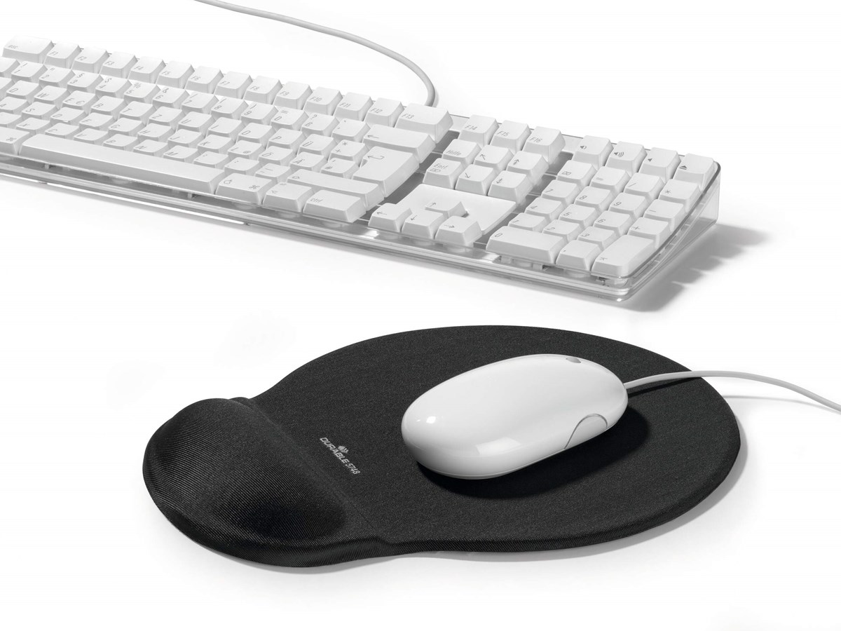 Ergonomisk musmatta med geléfyllt handledsstöd som förebygger musarmsbesvär. Ovansida av mjuk polyester. Undersida med antiglidskydd som gör att musmattan ligger still. Mått: 23 x 0,26 x 26 cm (BxHxD).