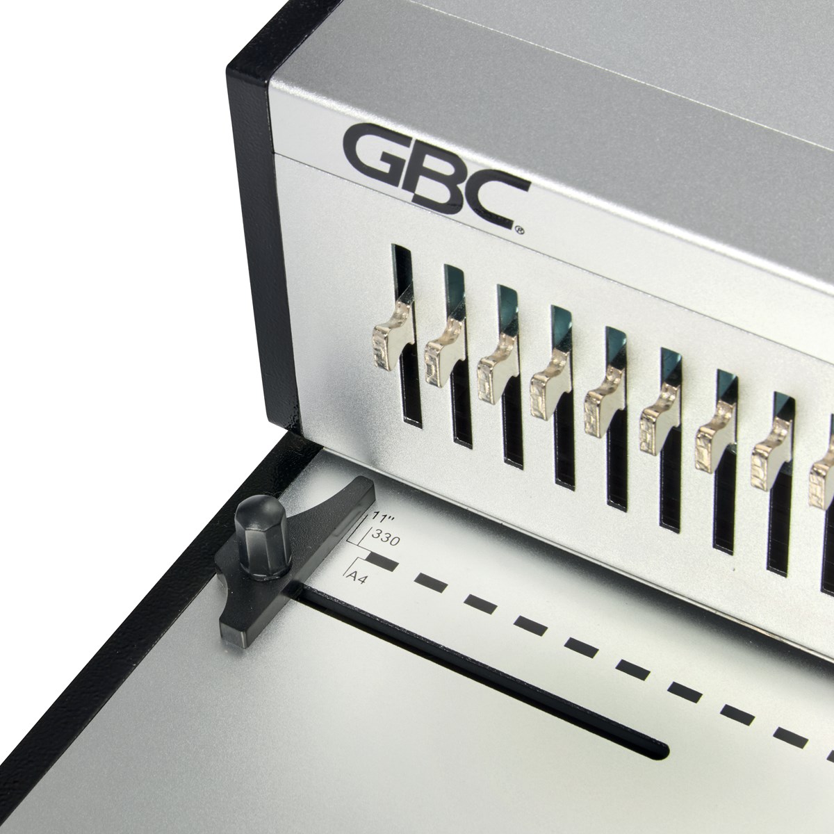 Binder A4/A5 stående och A3 liggande dokument. Stansar upp till 30 ark åt gången (70 g) Binder upp till 500 ark (70 g) åt gången med en 51 mm kam 21 väljarstift för justering och anpassning till alla pappersstorlekar upp till A4 Justerbart marginaldjup