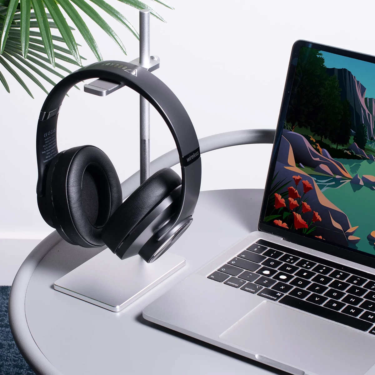 Detta hörlursställ är tillverkat av massivt aluminium och utstrålar elegans samtidigt som det erbjuder en funktionell förvaringslösning för dina älskade hörlurar. Perfekt för ditt skrivbord eller bredvid ditt HiFi-system och ger en touch av sofistikering till alla utrymmen. Dess solida aluminiumkonstruktion säkerställer en stabil bas som förhindrar att dina hörlurar halkar eller faller. Ta farväl av trasiga huvudband och repade öronkåpor, eftersom detta stativ ger en säker och dedikerad plats för dina hörlurar.