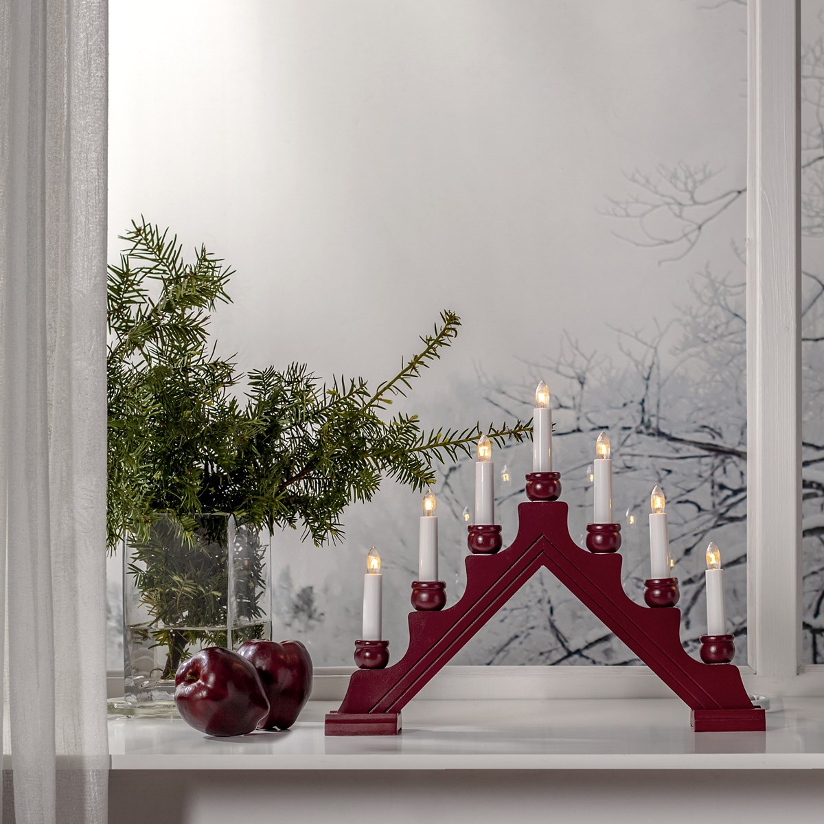 Traditionell 7-armad träljusstake. En enkel och dekorativ ljusstake som sprider adventstämning. Mått: 34x42 cm.