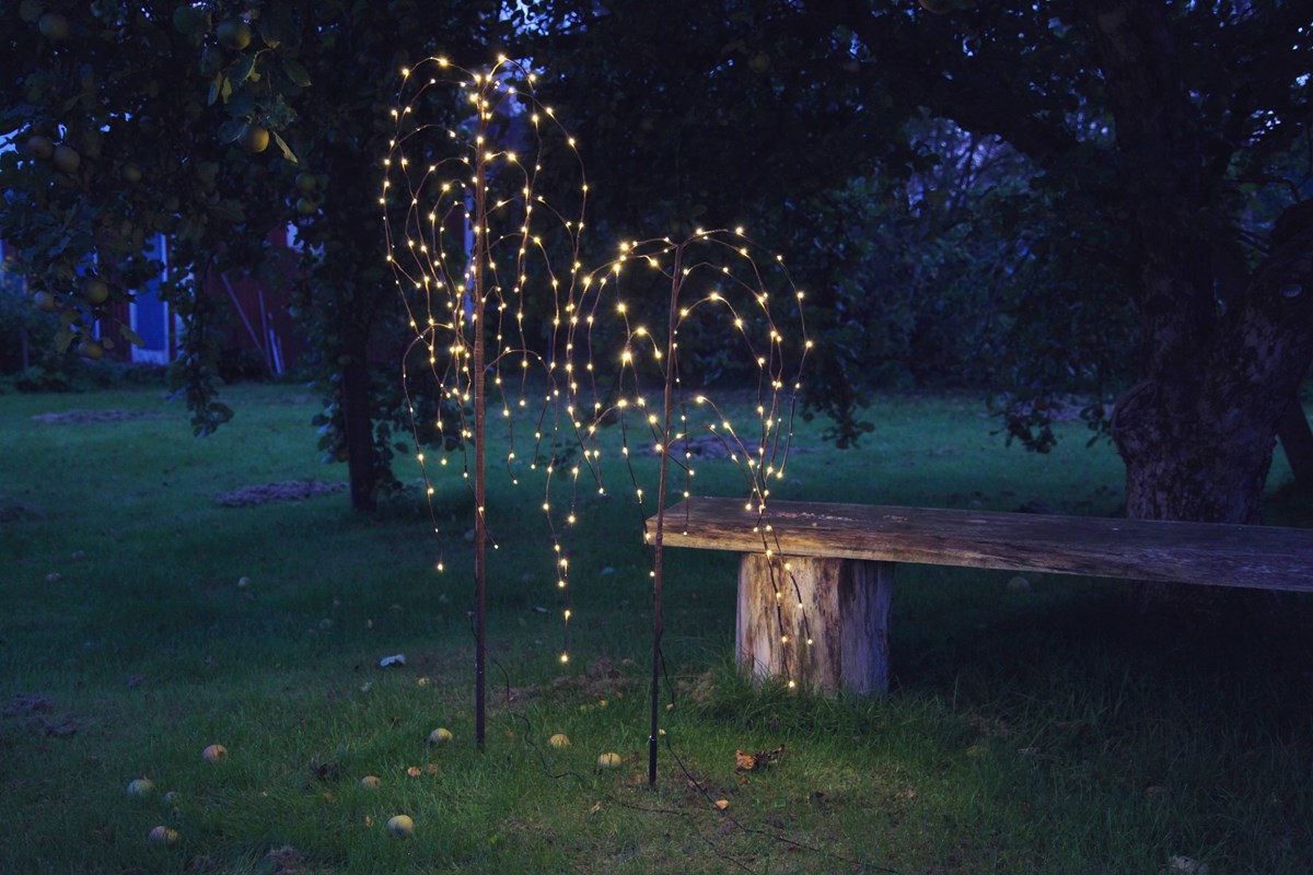 Brunt dekorationsträd med LED-lampor för utomhusbruk. Underbar dekoration att inreda med i trädgården. Trädet ger ifrån sig ett fint sken i mörkret. Mått: 110x40 cm. IP44.
