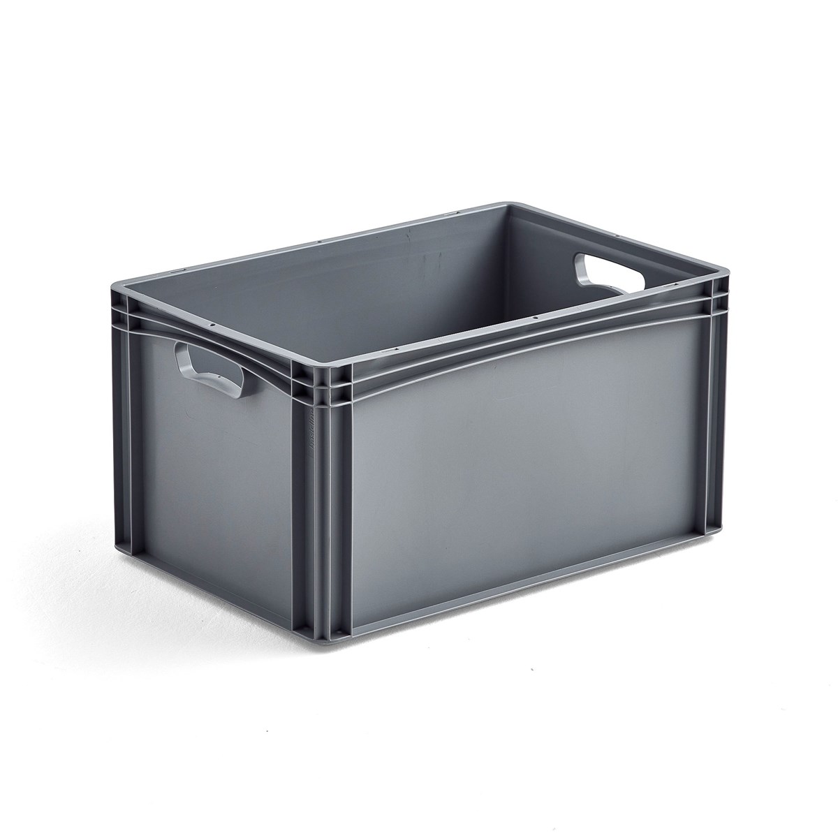 Backen är tillverkad av återvinningsbar polypropen. Den är UV-stabil, hygienisk och livsmedelsgodkänd, vilket gör den till ett optimalt val för de flesta arbetsplatser. Dessutom tål backen temperaturer mellan -40°C och +90°C och de flesta typer av kemikalier. Den är greppvänlig med handtagshål på kortsidan.