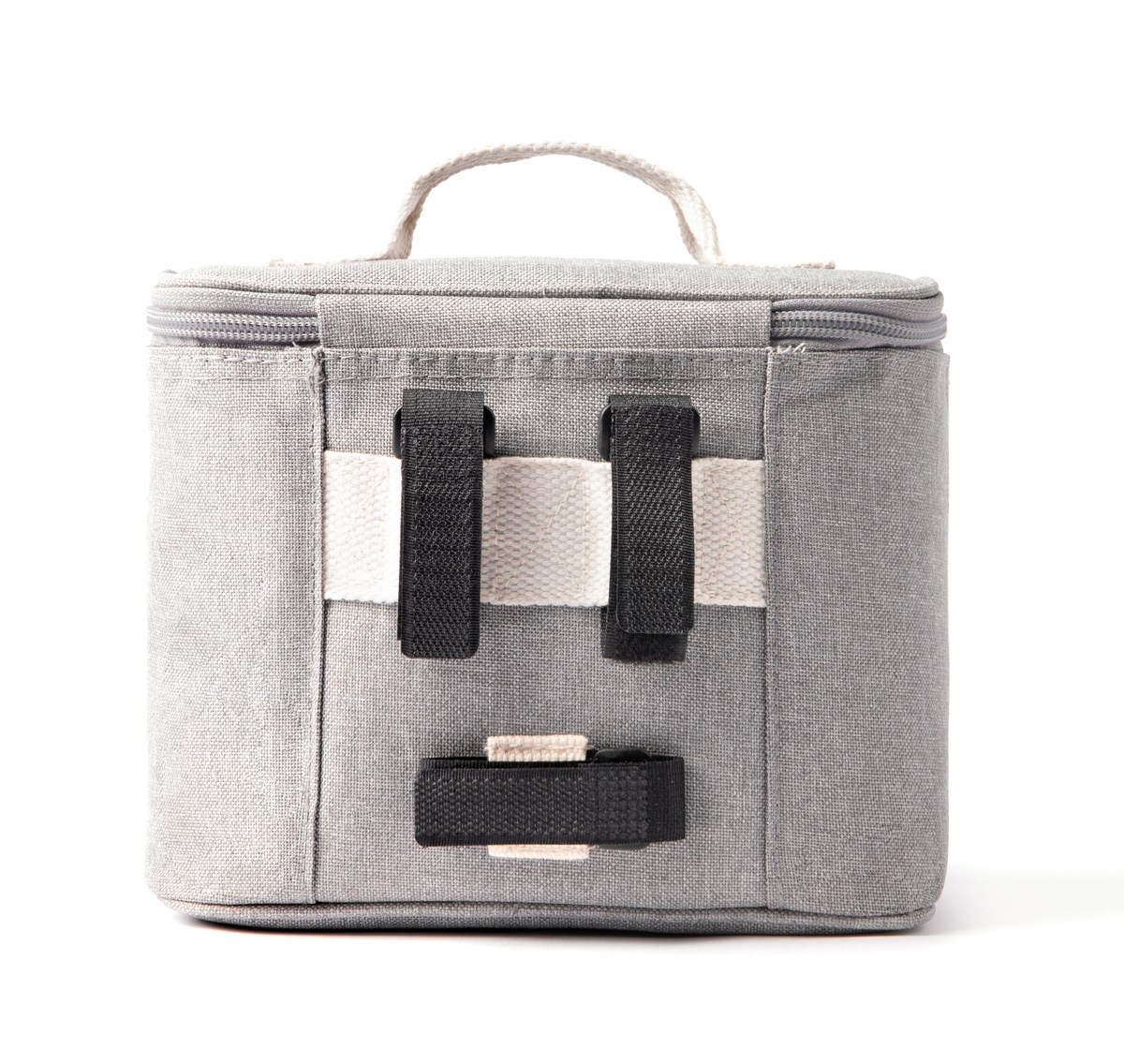 En kylväska som passar perfekt till cykelutflykten. Kardborre på baksidan av väskan gör det möjligt att fästa den på cykelstyret. Tillverkad av 50% återvunnet material av PET-flaskor. Till en väska går det åt ca 5 st PET-flaskor. Tjock PEVA-vaddering för optimal isolering. Mått: 21 x 17 cm.