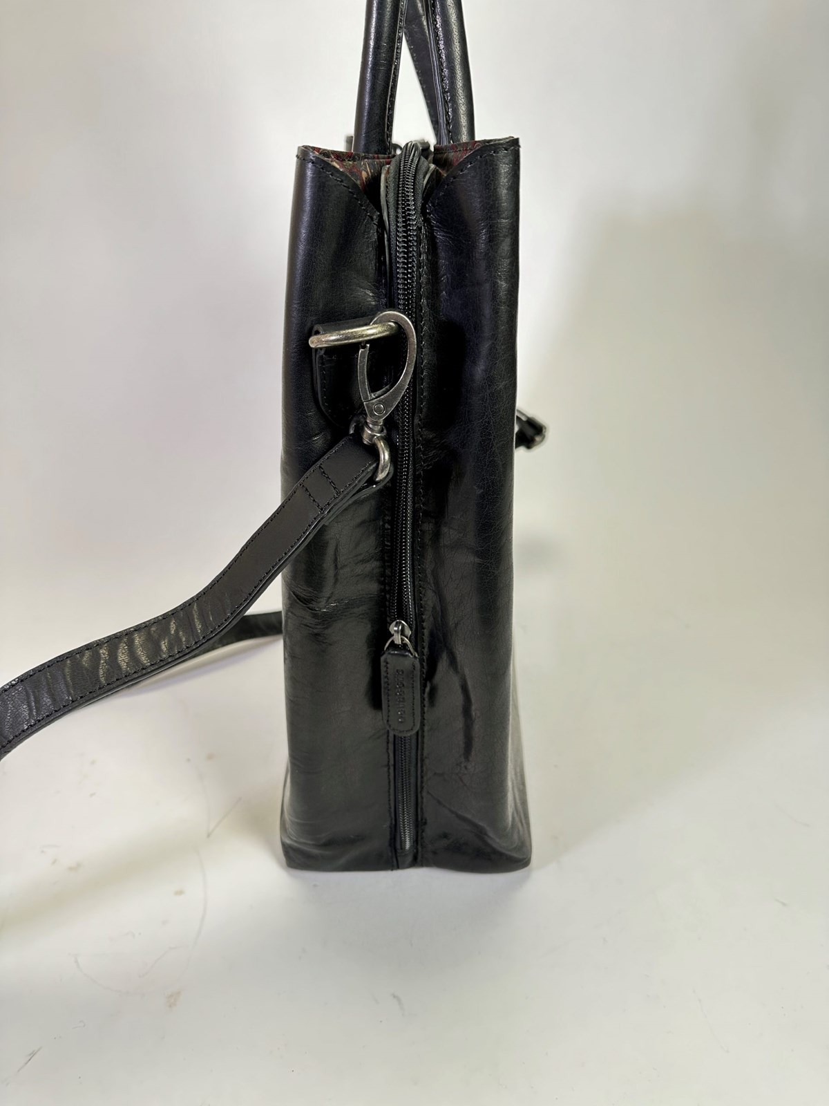 Baoobaoo Shopper är en stilren shopping bag i buffelskinn. Väskan har ett stort, fodrat fack med en dragkedja som försluter. Insidan med ett fack för mobil och pennor och ett fack med dragkedja. På sidan om mittfacket finns det två fack med en avdelare i varje fack. Dessa fack försluts med magnetlås. Handtagens längd gör det möjligt att antingen bära shoppern i handen eller över axeln. Väskan kommer med en lång axelrem. Mått: 320 × 130 × 370 mm.