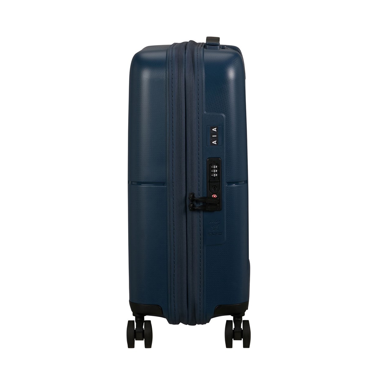 Resväskan är utrustad med ett TSA-lås för säker resa, ett handtag med dubbla skenor för enkel manövrering och fyra dubbelhjul som garanterar smidig rörlighet. Den har också kabinstorlek, vilket gör den idealisk för flygresor. För extra kul och personlig anpassning levereras varje resväska med två ark med klistermärken som kan fästas på anpassningsplattan, så att du kan anpassa ditt bagage efter eget tycke.