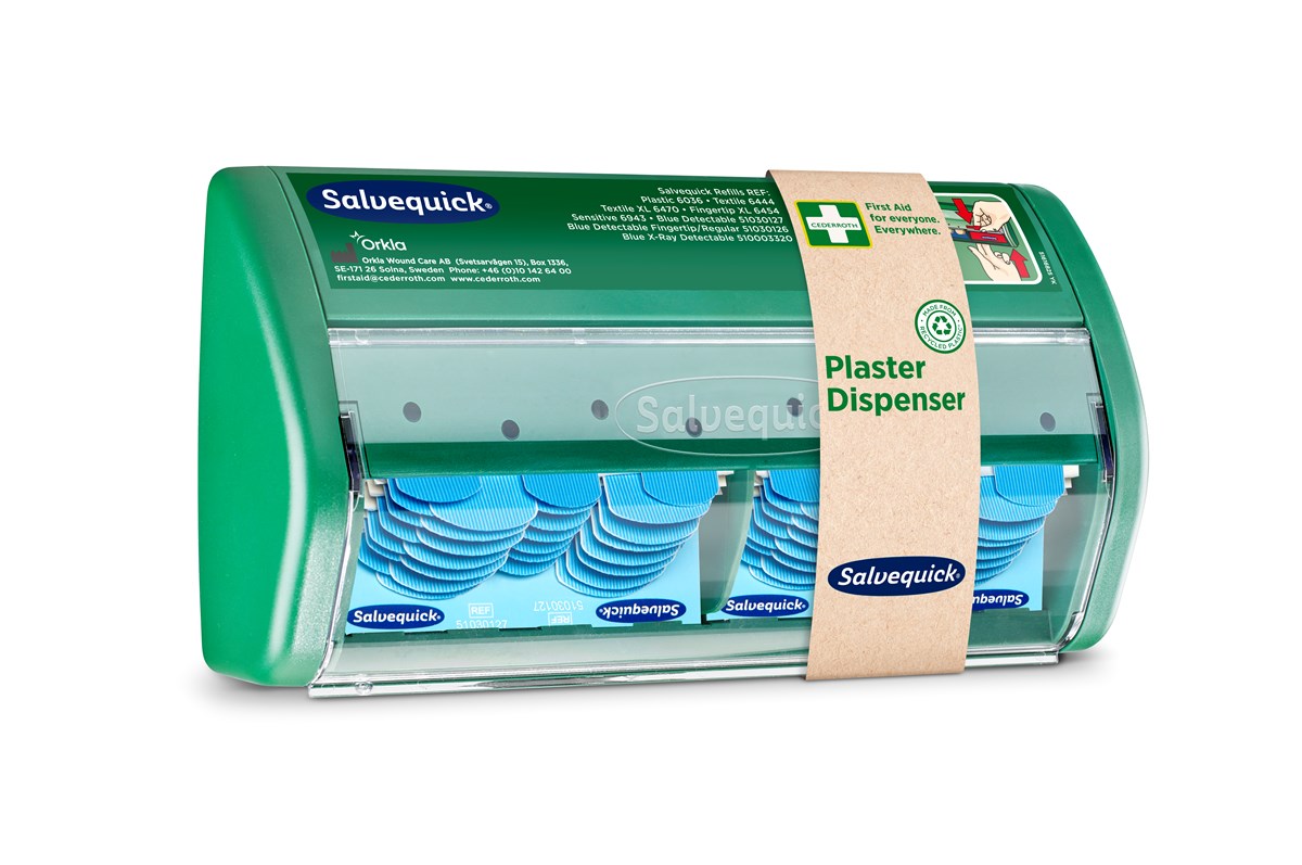 Salvequick Plåsterautomat Blue Detectable är särskilt avsedd för användning inom livsmedelsindustrin. Plåstren är detekterbara och upptäcks av de flesta metalldetektorer. Den blå färgen gör att plåstren också är lätta att upptäcka visuellt. Plåstra om med en hand: När ett plåster dras ur plåsterautomaten friläggs den ena häftytan och plåstret är klart att användas. Så smidigt att du kan plåstra om med bara en hand. Rengör såret, se till att det inte är infekterat och byt plåster varje dag.