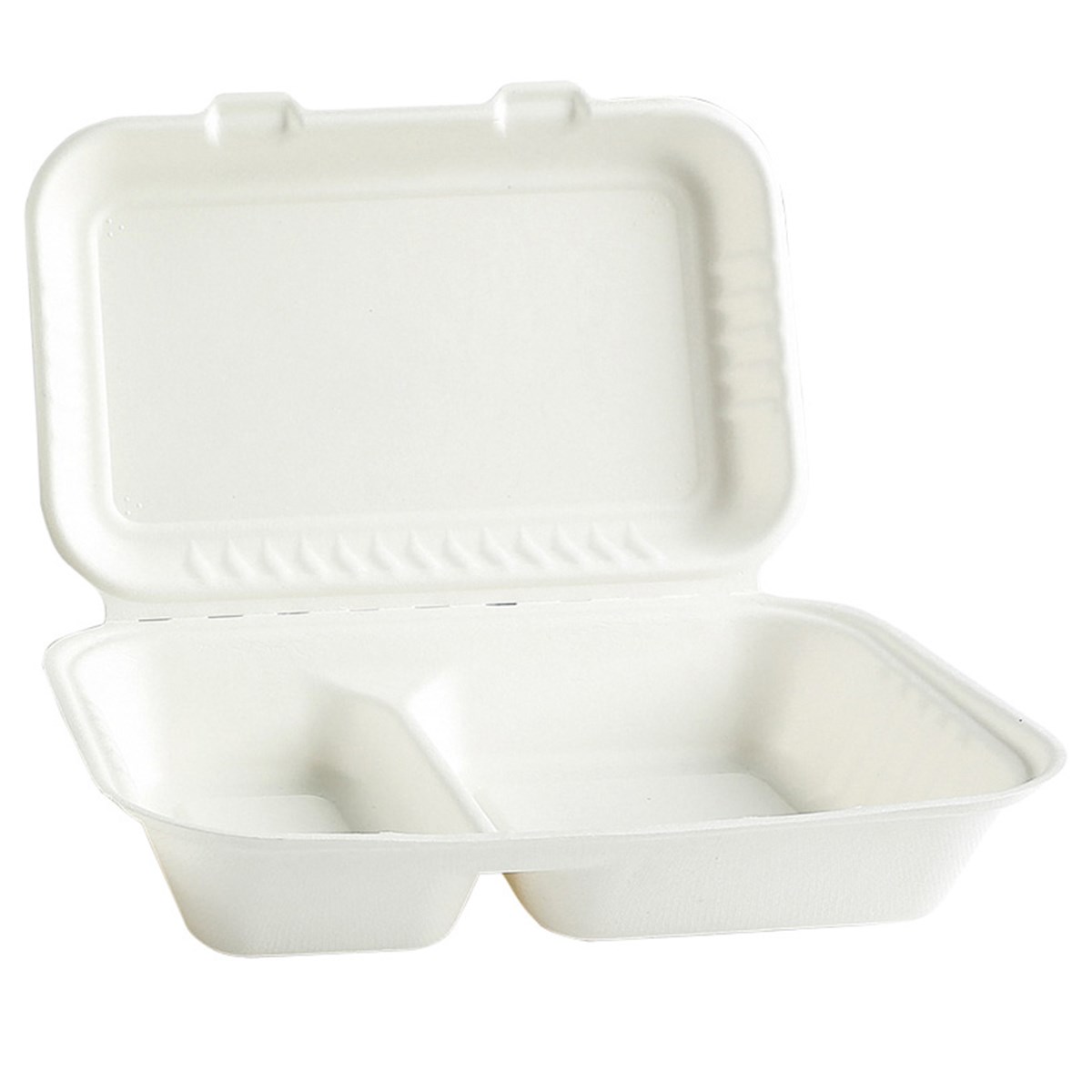 Matlåda tillverkad av bagasse som är en biprodukt från sockerrör. Tål temperaturer upp till 100 grader. Går att värma i mikrougn. Mått: 249 x 163 x 46/66 mm. 400 + 600 ml. 50 st/förp., 5 förp./kartong.