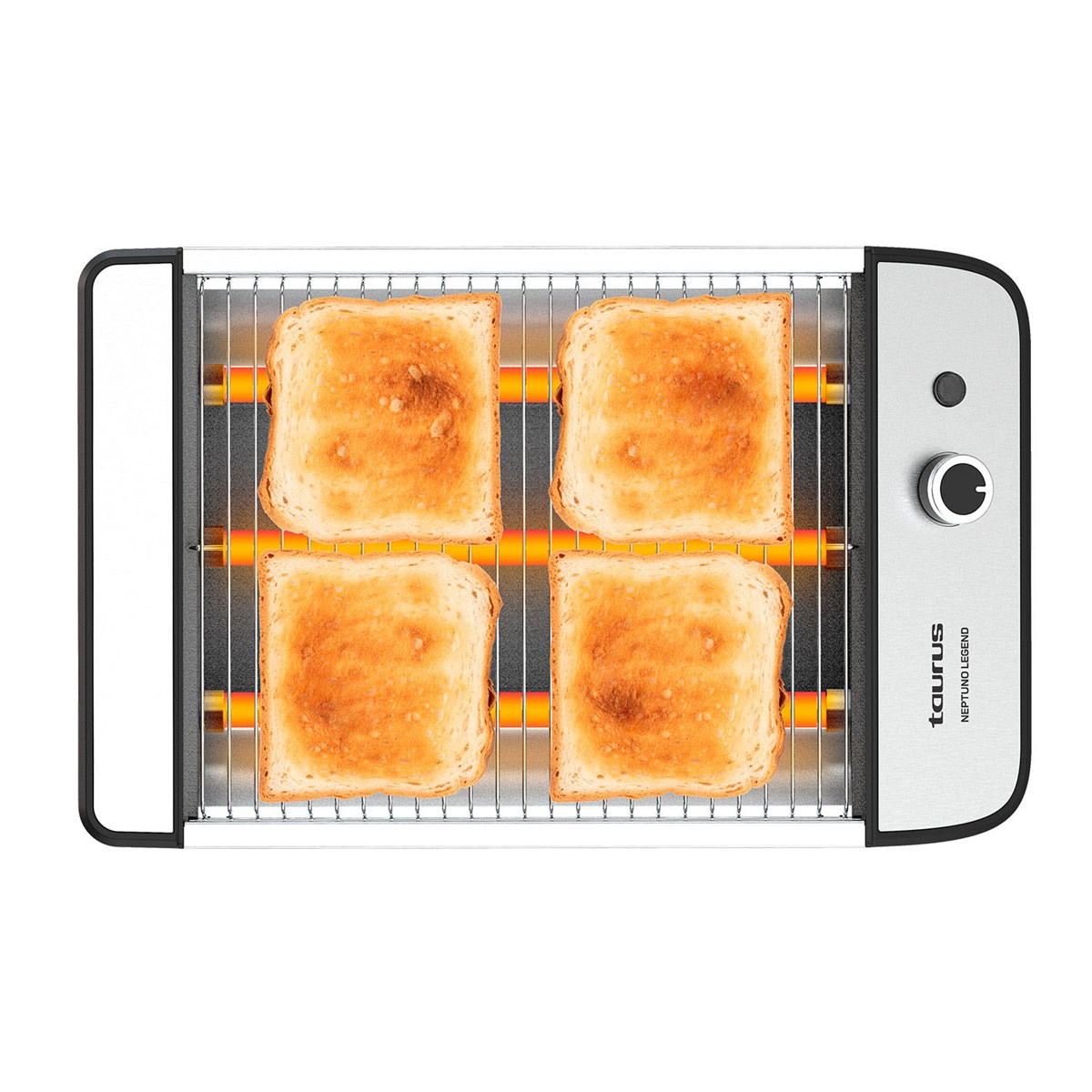 Brödrosten Neptuno Legend är utformad för att ge effektiv och mångsidig rostning med en effekt på 1000W och tre kvartsvärmare. Den har en stor rostningsyta på 25x20 cm som rymmer upp till fyra brödskivor eller olika bakverk. Den horisontella designen är lämplig för alla typer av bröd, och den variabla temperaturkontrollen gör att du kan uppnå perfekt rostat bröd varje gång. För extra bekvämlighet har brödrosten en automatisk avstängningsfunktion i slutet av rostningscykeln, tillsammans med en akustisk varningsanordning och en driftsljusindikator. Smulfacket som är lätt att ta bort gör det enkelt att rengöra, medan den fingeravtrycksskyddade rostfria stålfinishen ger ett snyggt utseende. Dessutom är brödrosten utrustad med halkfria fötter för stabilitet och ett sladdhölje på basen för snygg förvaring.
