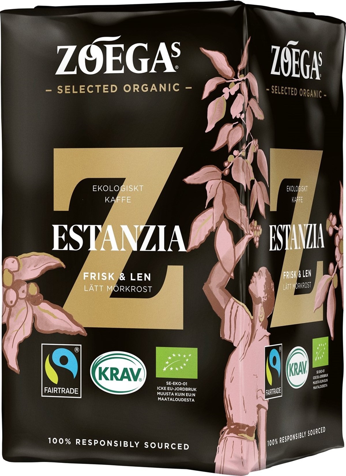 ESTANZIA är en frisk och balanserad Fairtrade- och KRAV-märkt smakkomposition, av högvuxna bönor från Östafrika, och Latinamerika. Lätt mörkrostad för en frisk välbalanserad smak med toner av röda vinbär och mjölkchoklad. En av ZOÉGAS certifierade kaffeblandningar gjord av 100% Arabicabönor. Med passion för mörkrost sedan 1886.