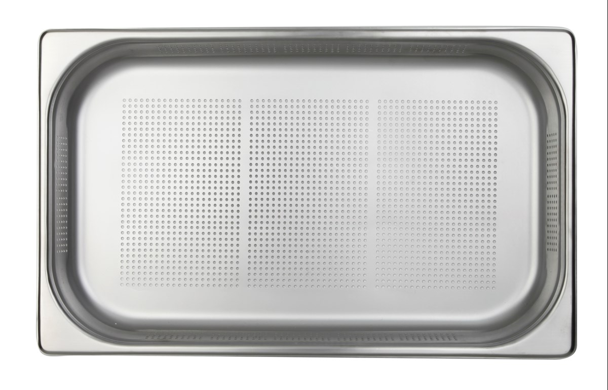 Perforerad gastronormkantin 1/1- 65 tillverkad i rostfritt 18/10 stål, med fokus på funktionaliteten som förenklar arbetsprocessen. Kantinen är lätt att rengöra och tål tuffa köksförhållanden, perfekt anpassad för såväl servering som tillagning i det professionella köket. . Tål temperaturer från -100°C - 400°C. Mått: 53 x 32,5 x 6,5 cm.