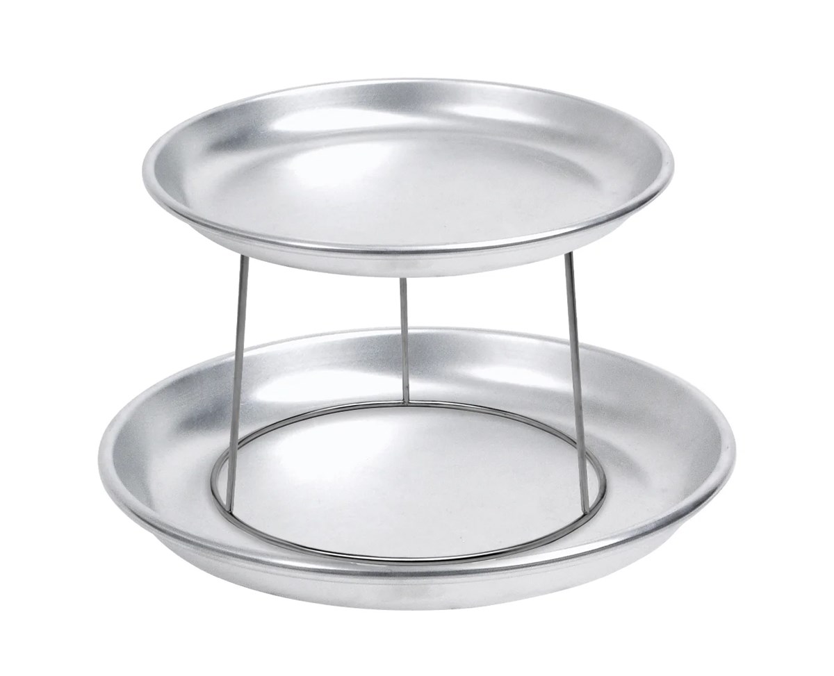 Hög ställning för exempelvis skaldjursbufféer eller andra dukningar där nivåer behövs. Tillverkad i rostfritt stål med ett kromat yttre. Den övre ringen mäter Ø 21 cm och den undre Ø 25 cm. Höjd 18,5 cm.
