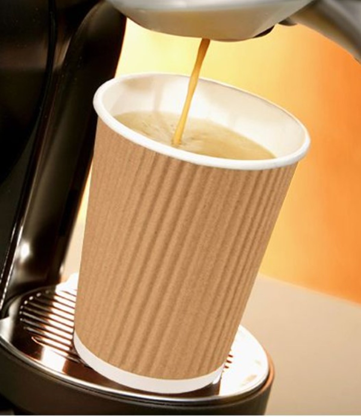 Trendig coffe-to-go bägare med "Ripple Wall kartong" för varma drycker av alla slag. Ej lämplig för alkoholhaltiga drycker. Biologiskt nedbrytbar. Material: papper med PLA-belagd insida