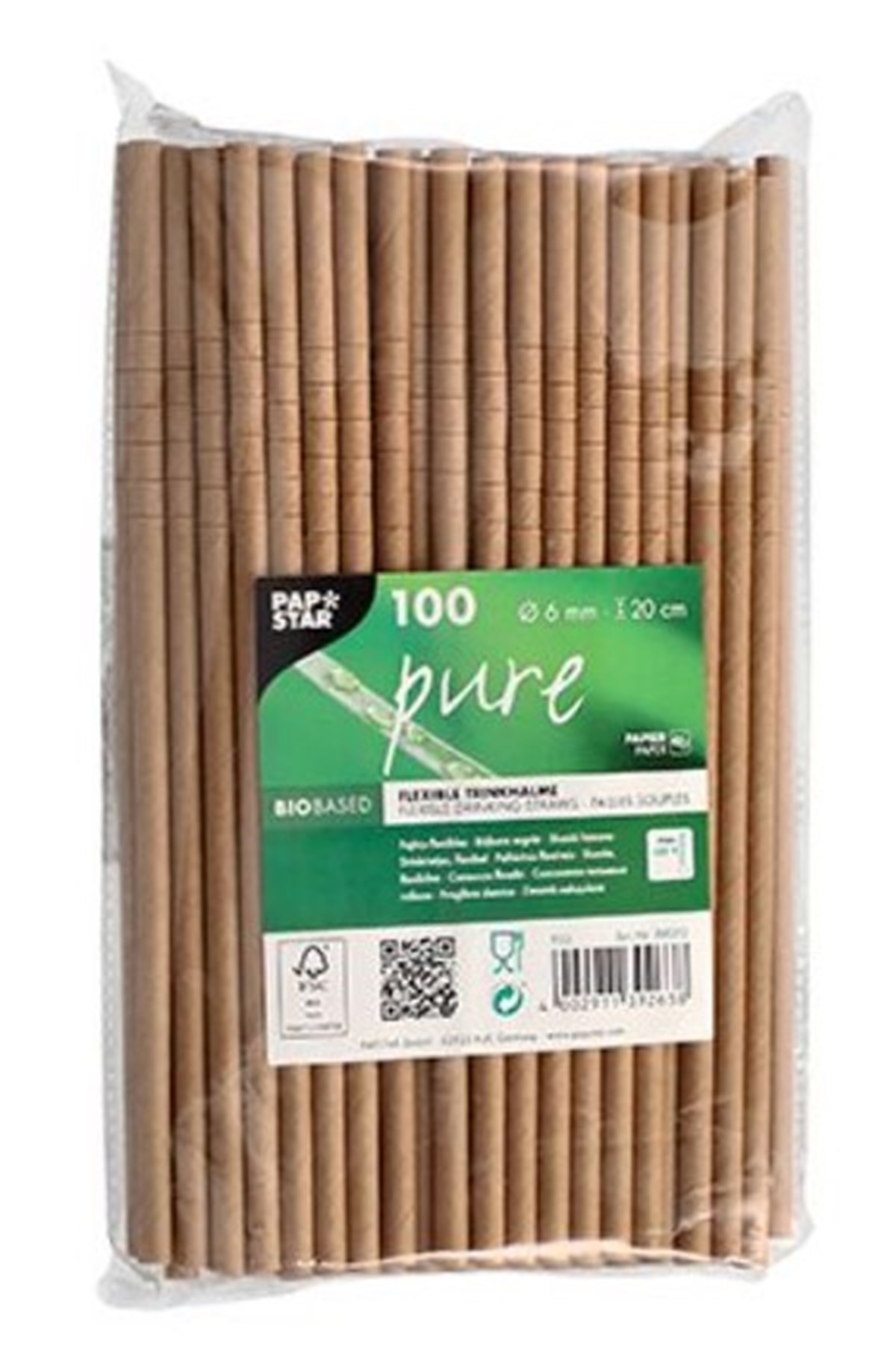Sugrör av papper Pure Ø 6 mm x 20 cm brun 100/fp