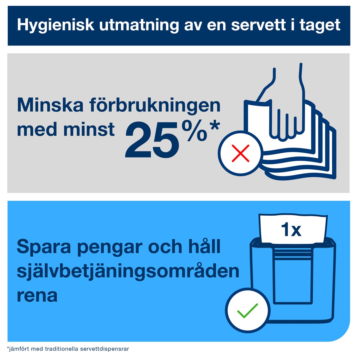 Utmatning av en servett i taget minskar avfall Tillverkad av äkta trä Kompakt design Hög kapacitet leder till färre påfyllningar