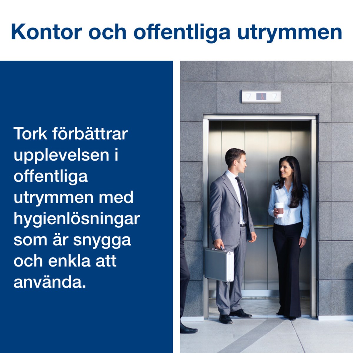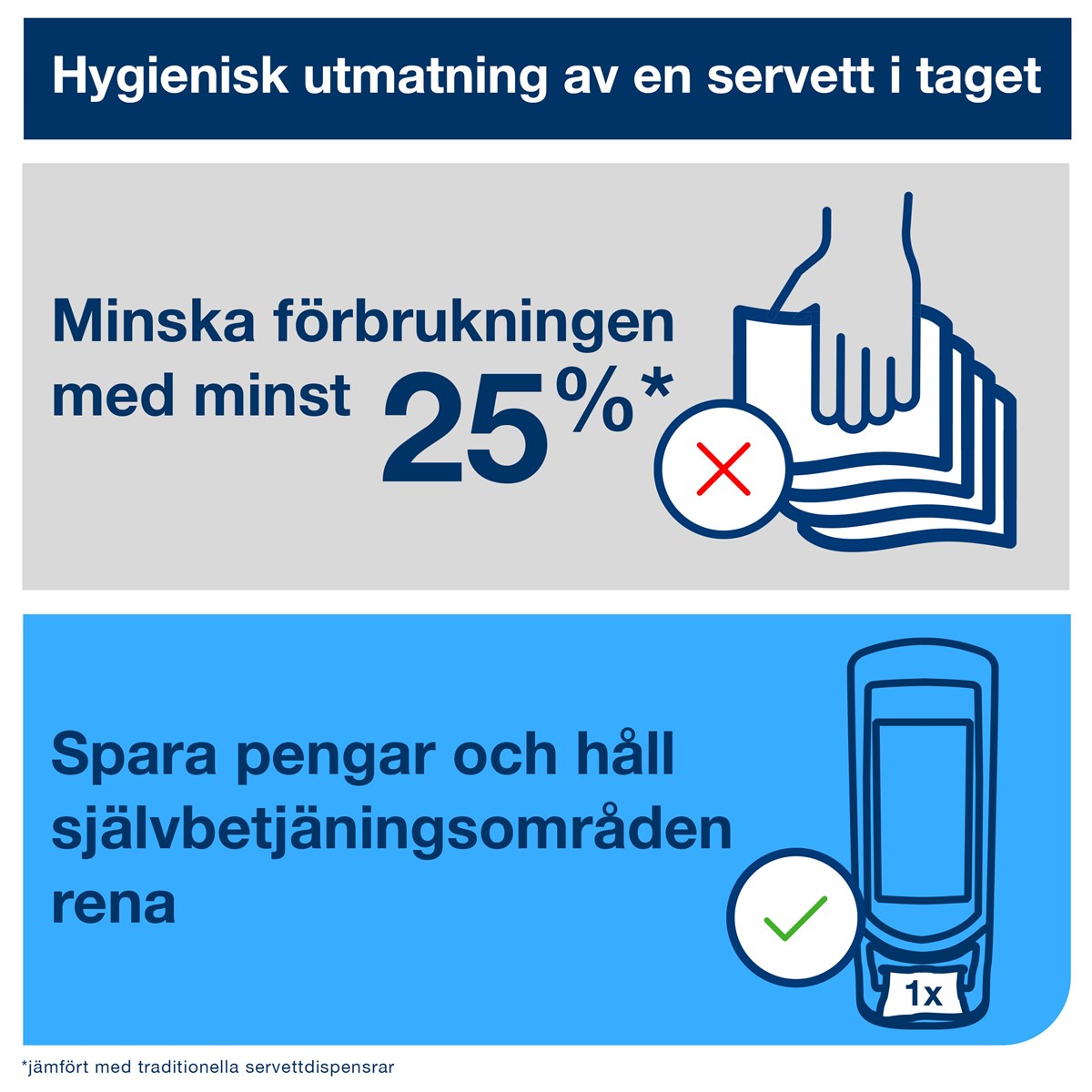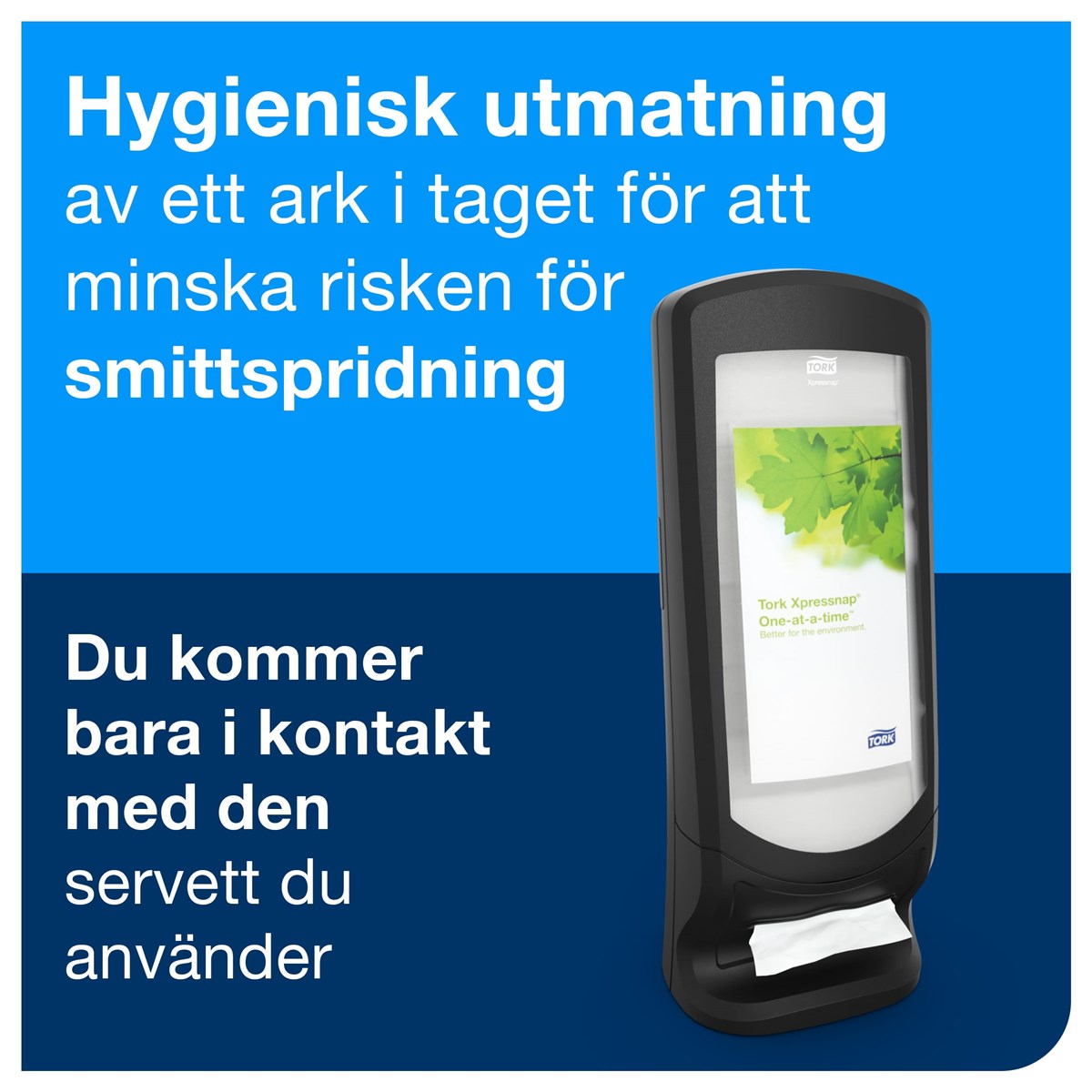 Stående design som spar plats på disken Enkel väggmontering Fönster för reklam eller personalinstruktioner Ett ark i taget för förbättrad hygien och minskad förbrukning Slitstark och enkel att rengöra