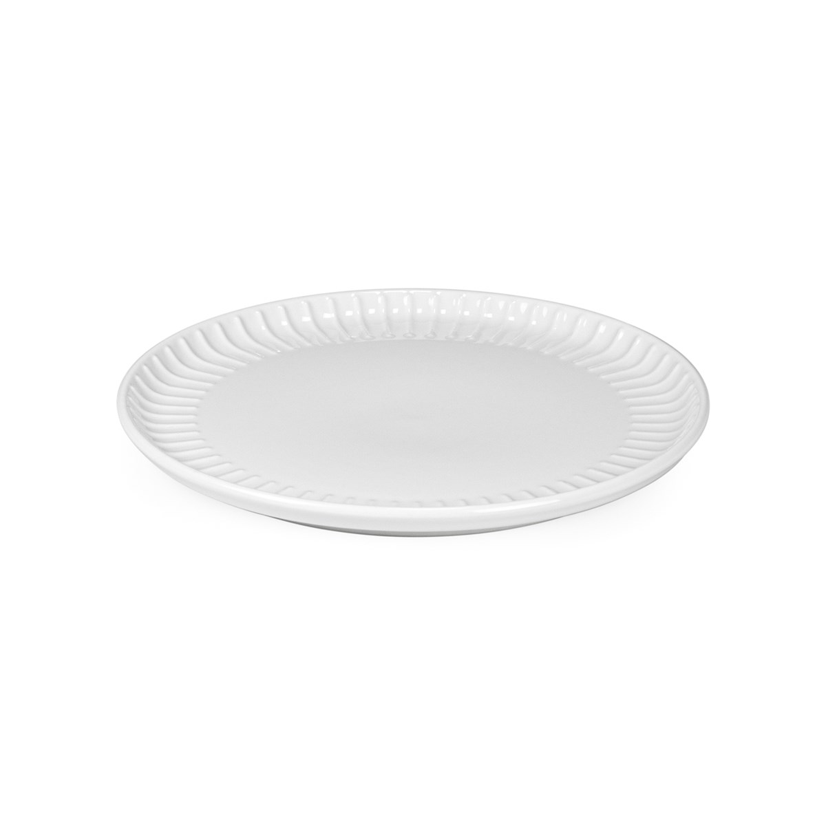 Tallrik i serien Phoenix. Tallriken är tillverkad av aluminium förstärkt porslin som bränns vid högre temperatur för bättre stöttålighet och längre hållbarhet. Tallriken är dekorerad med ränder i relief.