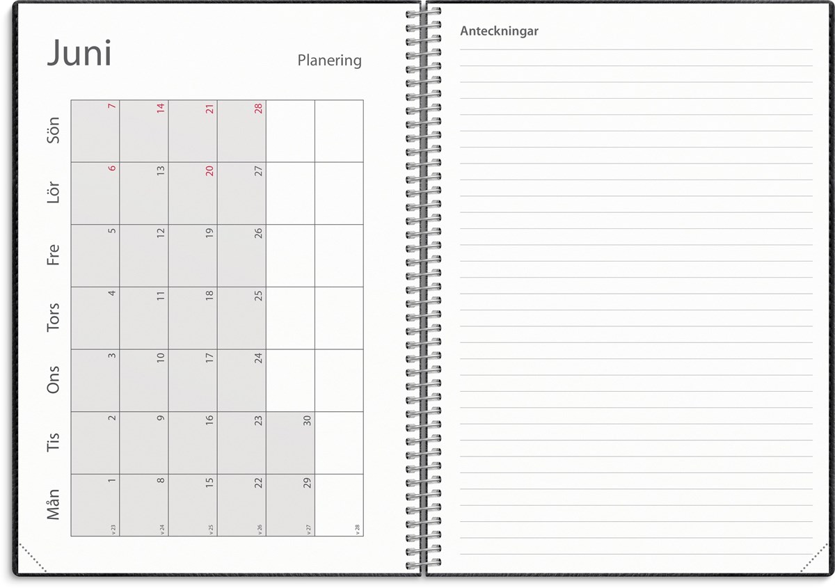 Study A5 är en praktisk kalender för den studerande. Med en stående layout samt timindelning 8-17 hjälper kalendern dig att behålla strukturen genom hela läsåret. Det finns även utrymme för att skriva upp årsplaner, scheman och provresultat för att lättare kunna reflektera över akademisk utveckling. För att underlätta organiseringen har Study även en praktisk förvaringsficka. Allt du behöver för ett framgångsrikt läsår! Omslaget Twist är i en sammetsmjuk skinnimitation med en användbar flärp som kan fungera som bokmärke för att enkelt förflytta dig i kalendern.