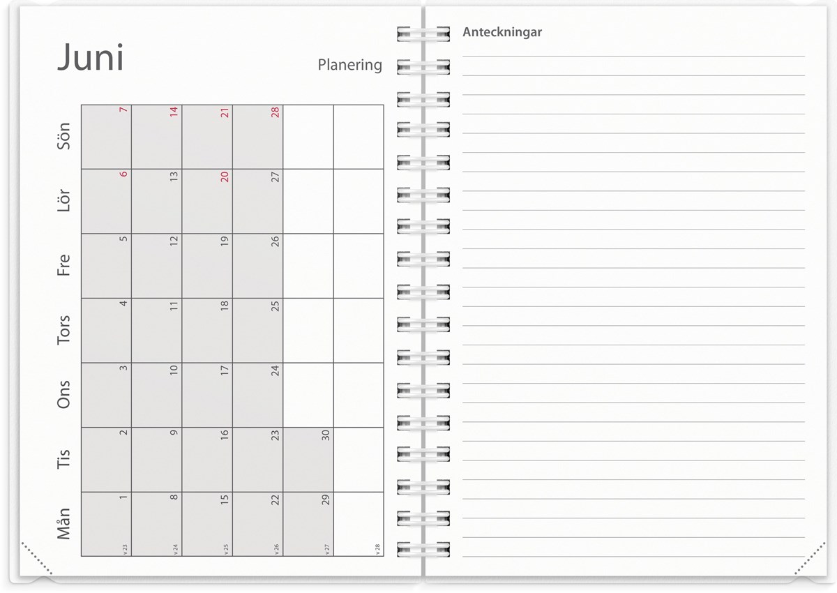 Study A6 är en komprimerad kalender för den studerande. Med stående layout samt timindelning 8-17 hjälper den här kalendern dig att behålla strukturen genom hela läsåret. Det finns även utrymme för att skriva upp scheman och provresultat och plats för reflektioner över dina studier. Study A6 är i en mindre storlek som enkelt får plats i skolväskan såväl som fickan. Med 4i1 har du 4 framsidor som du lätt kan växla mellan. Eller också välja din egen omslagsbild.
