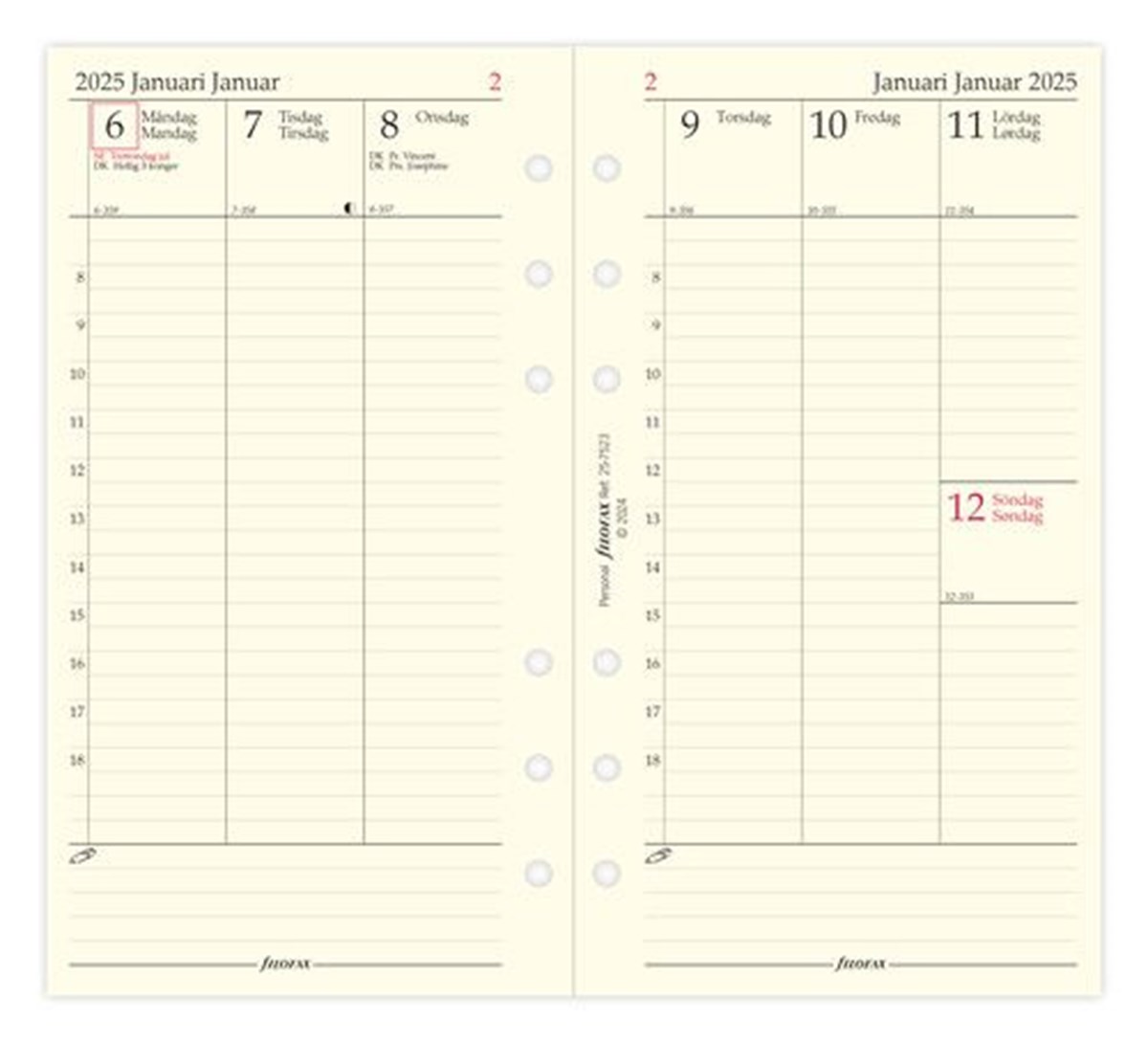 Dagbok Filofax Personal 2025 vecka/uppslag vertikal