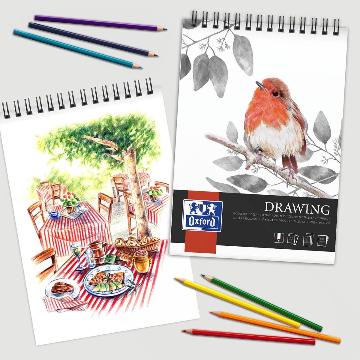 Kraftigt papper på 160 g Speciellt lämpat för teckning Toppspiral Perforerat papper