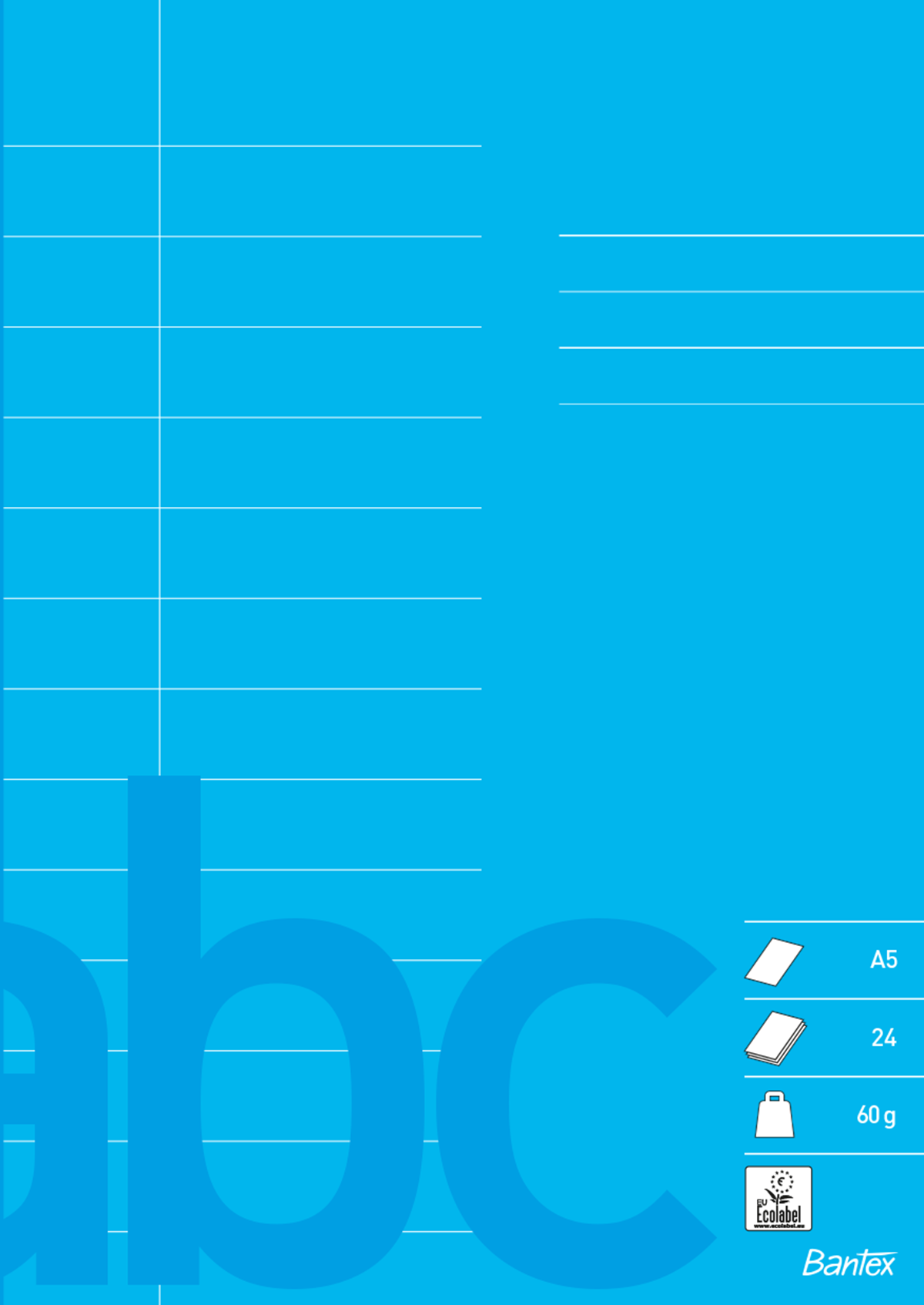 Alla Bantex skolhäften håller hög produktkvalitet. Det finns ett stort antal linjeringsalternativ att välja mellan, vilket innebär att elever i alla åldrar med fördel kan använda skolhäftena. Varje linjeringstyp har en egen färg, vilket gör det lätt för eleverna att känna igen den linjeringstyp de brukar använda. På baksidan av häftet finns praktisk information samt linjal.