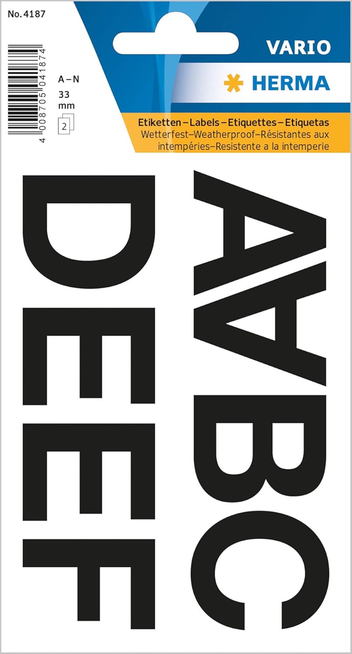 Bokstavsetiketter Herma A-N 33 mm svart 17/fp
