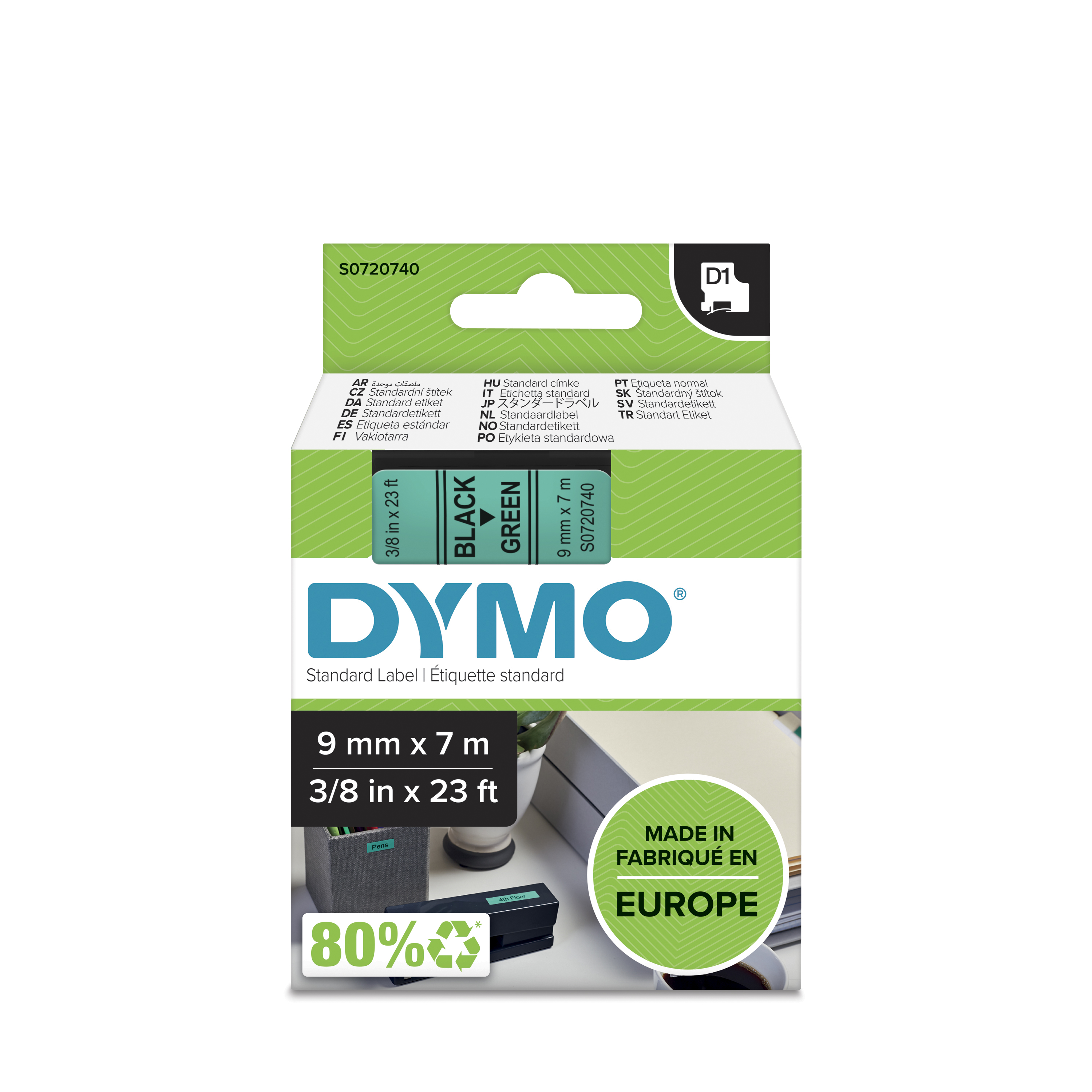 LabelManager® Executive 640 CB är kompatibel med både D1 Standard och Durable tejpalternativ med bredder från 6 mm till 24 mm som finns i en mängd olika färger.