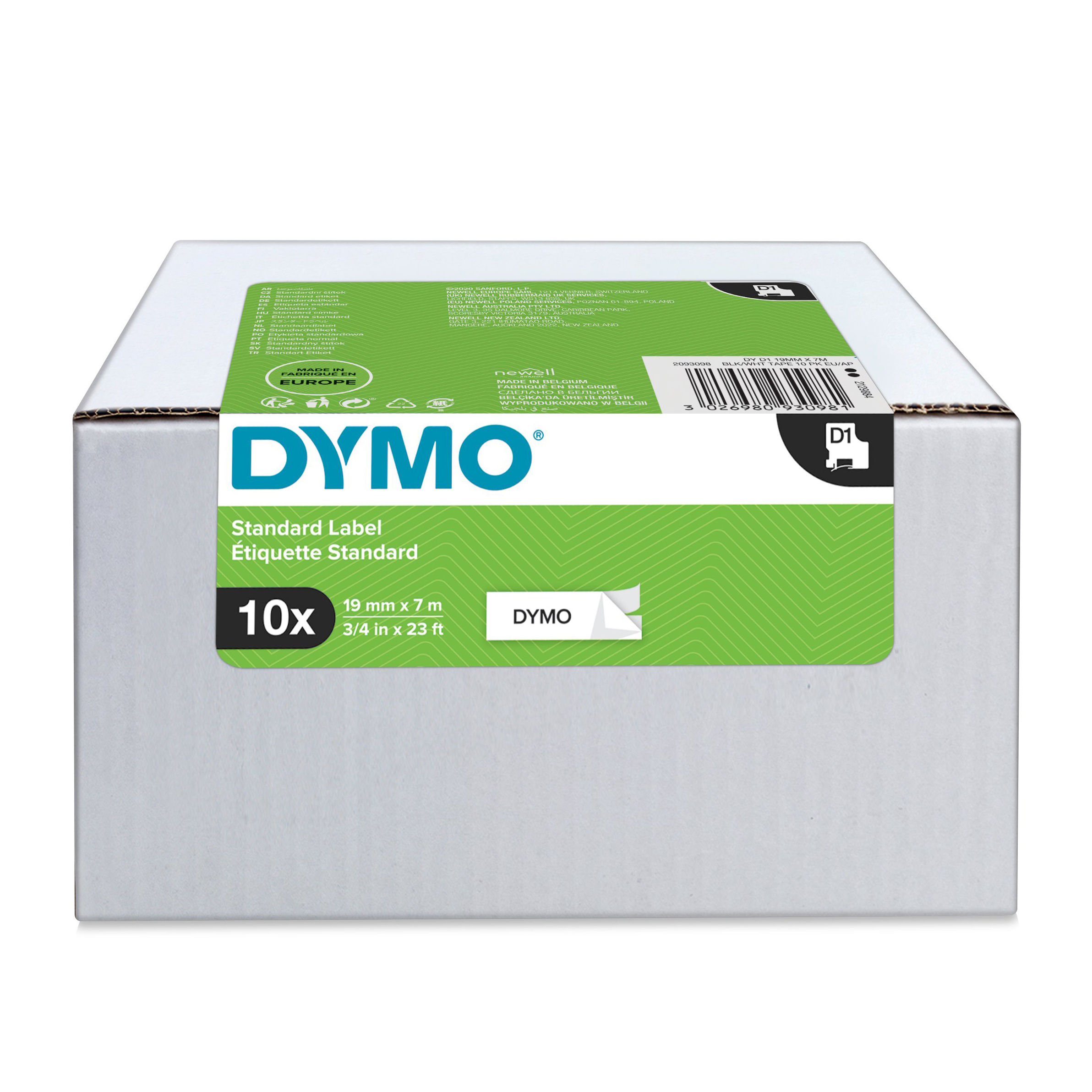 Förpackningen innehåller LabelManager®-märkmaskin, en D1-standard tejpkassett, uppladdningsbart batteri, USB-C-kabel (USB-C till USB-C), snabbstartsguide.