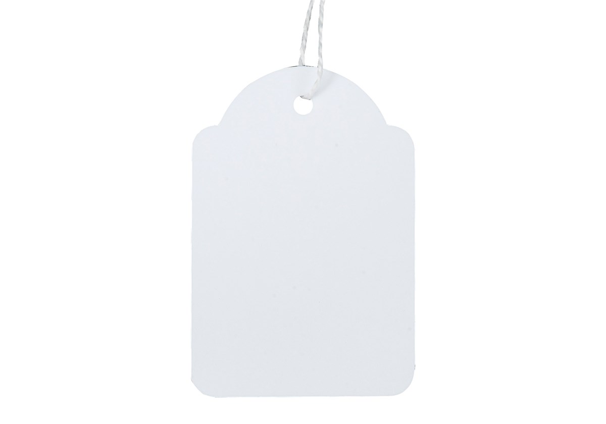 Etiketter i vit kartong, snöre medföljer. 500 st/förp.