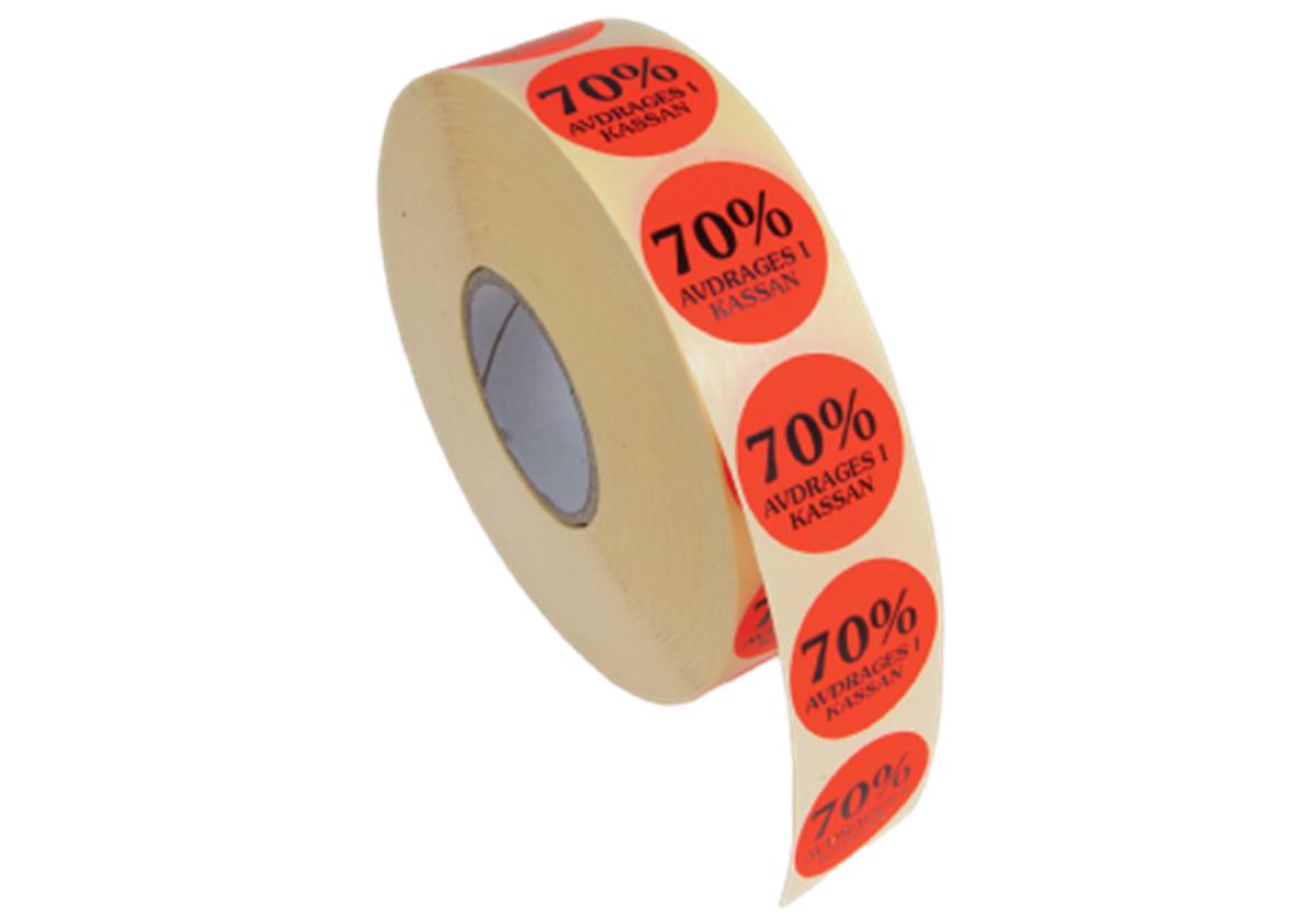 Rabattetiketter 70% avdrages i kassan 2000/rl