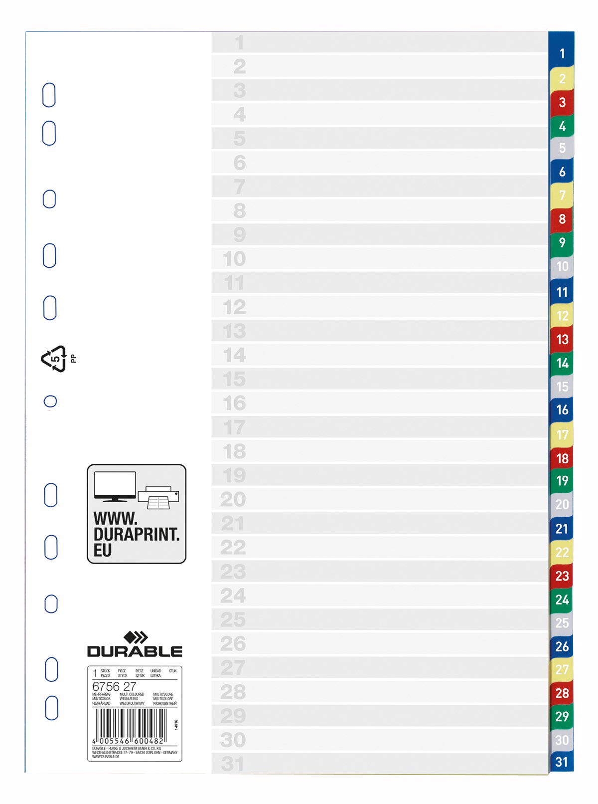 Plastregister Durable 1-31