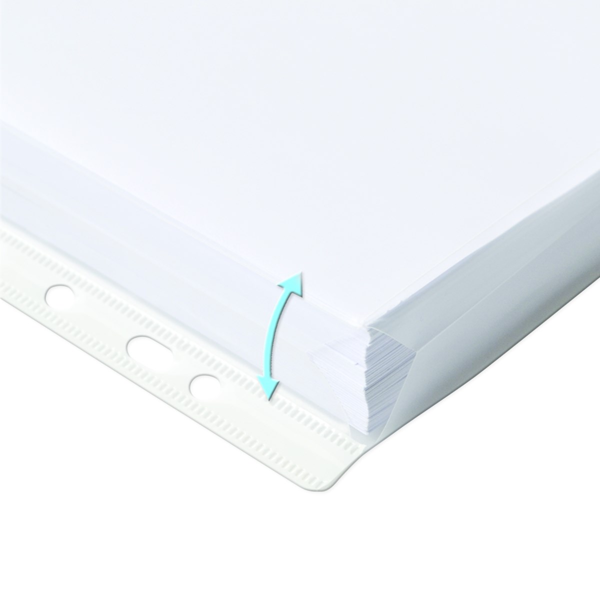 Av glasklar polypropylenplast med 20 mm bälg i sidor och botten. 0,18. Rymmer upp till 200 A4-ark. Universalhålning. 10 st/förp.