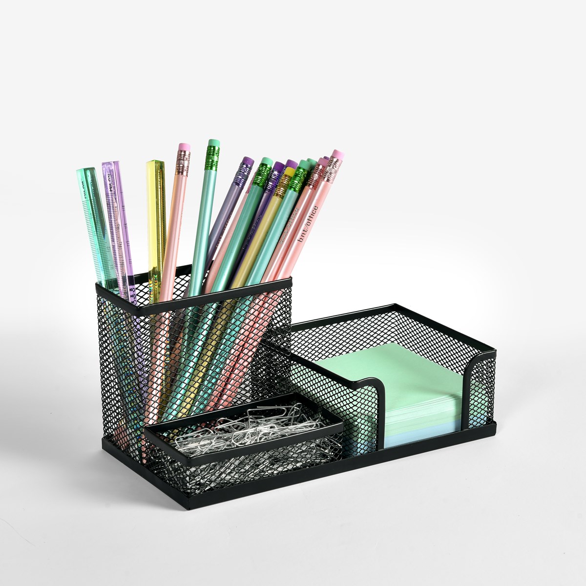 Ny produkt i vår Mesh-serie! Stilren och praktisk kombination av pennkopp och notisblockhållare i metallnät. Ett perfekt sätt att organisera skrivbordet och ha pennor och notisar lättillgängliga. En elegant och funktionell detalj för både kontoret och hemmakontoret.Mått: 20 × 10 × 10 cm.