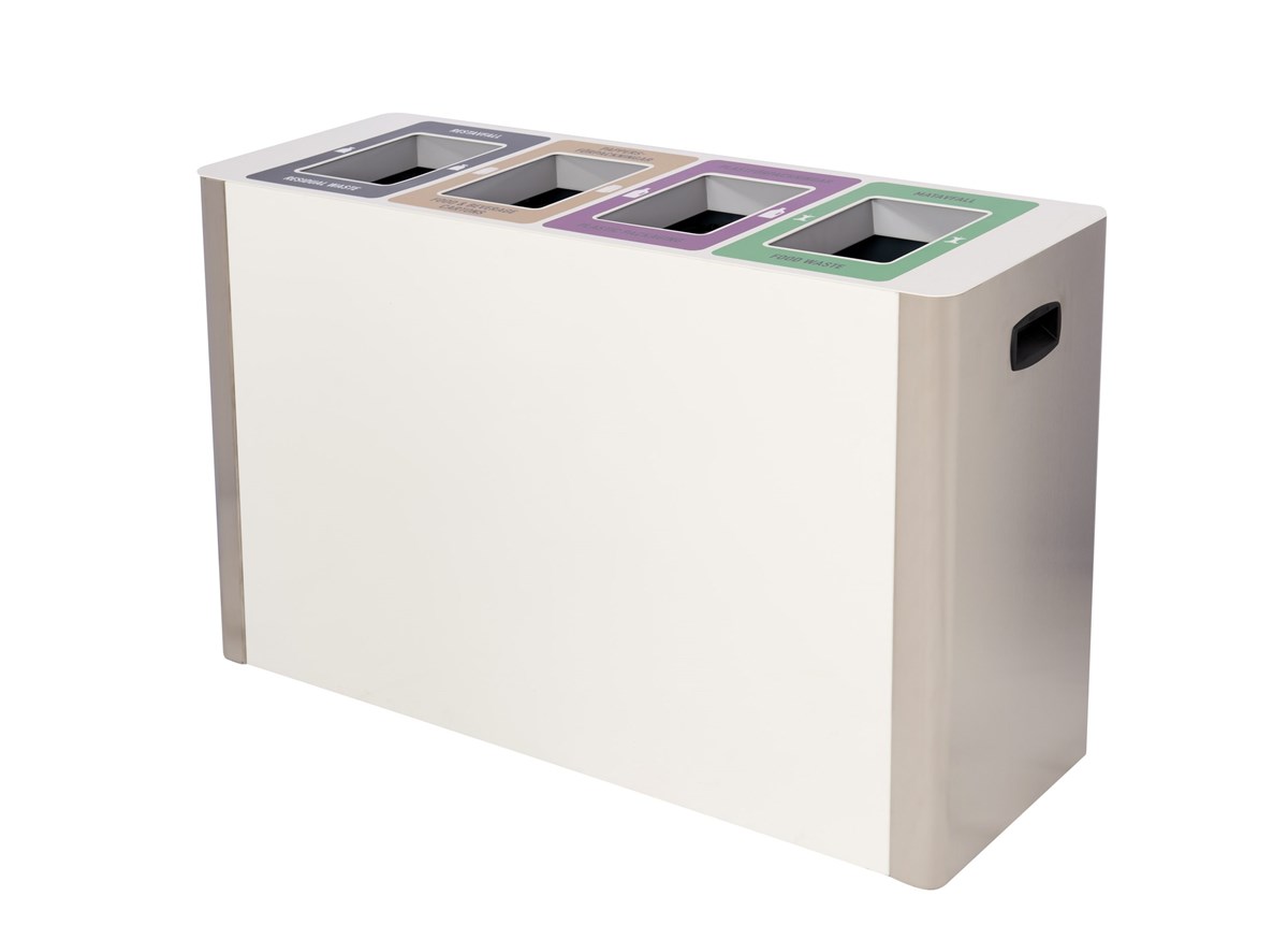 Commerz är en modulär avfallsstation som med sin eleganta design lätt kan placeras i olika typer av inomhusmiljöer så som kontor eller andra offentliga utrymmen som t.ex. tågstationer, flygplatser, skolor. Trots att Commerz kan fås i ett flertal fraktioner för bättre sortering så behöver den inte mycket utrymme och kan enkelt integreras även i smala passager och kontorskorridorer. Den kommer med låsbar dörr i vitt utförande i kombination med borstat stål på kortsidorna. Framsidan på skåpet kan anpassas efter önskemål och efter just er företagsdesign. Mått: 755 x 1450 x 387 mm. Mått inkast: 180 x 230 mm. Commerz laddas med Longopac Mini.