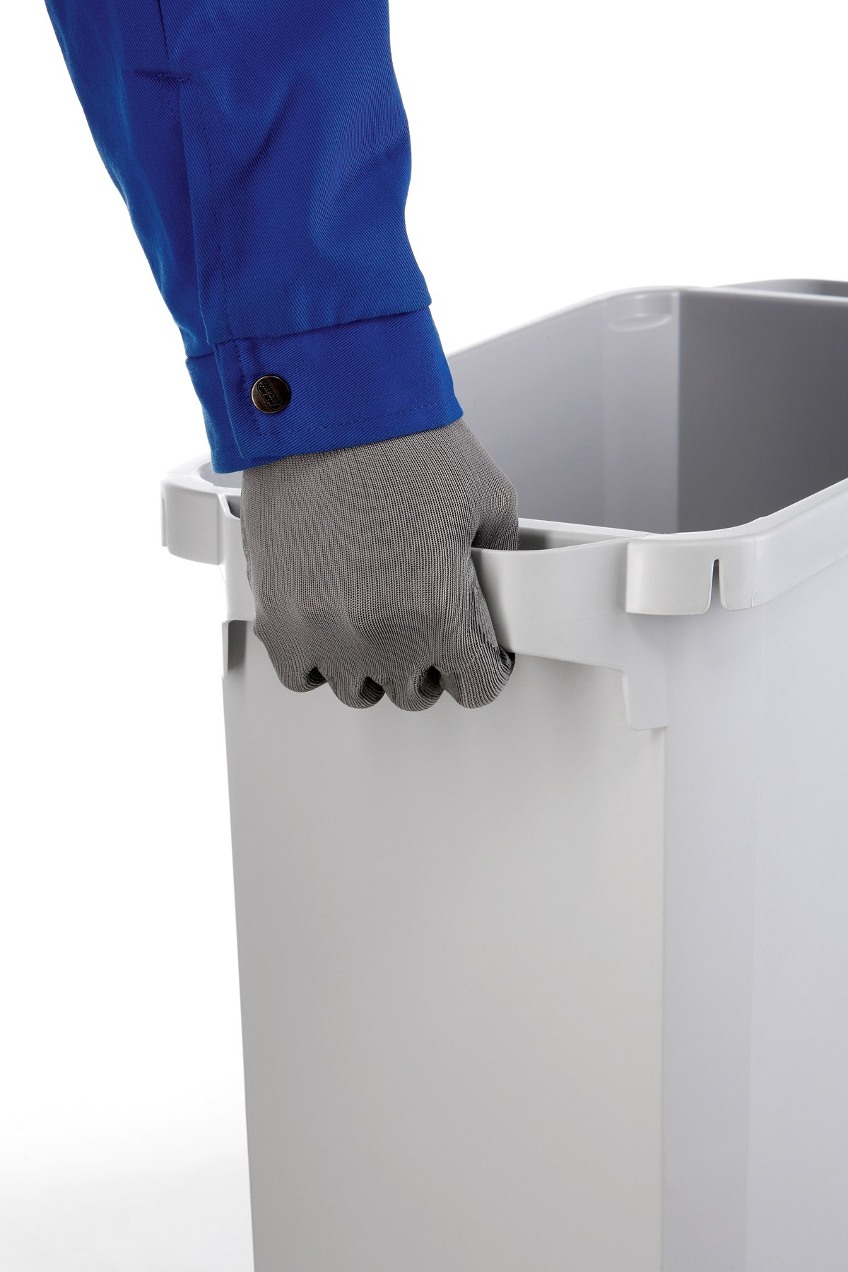 Fasade kanter förhindrar vakumeffekt vid stapling. Sopsäcken sitter säkert på plats via skåror i hörnen. Undersida med greppurtag förenklar lyft och tömning. Mått (HxBxD): 600 x 590 (inkl handtag) x 280 mm. Rymmer 60 liter.