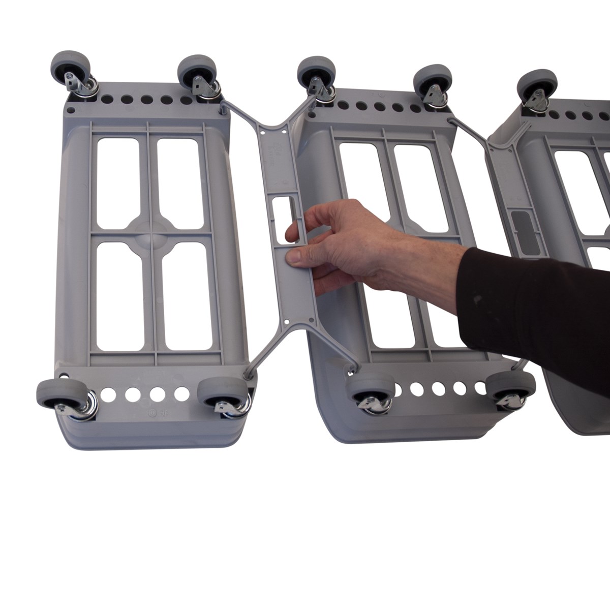 Kopplingsset för plastvagnar. Man kan därmed göra kopplingar mellan flera 60 L vagnar. Enkel snap in montering. Avståndet mellan kärlen vid toppen är 15 mm med lock och 23 mm utan lock.