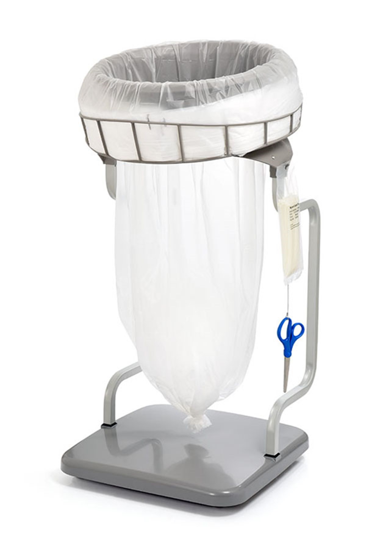 Ett golvställ för en mer hygienisk hantering då byte och förslutning sker från säckens utsida – ingen kontakt med avfallet. Maxi Recycling är främst avsedd för hantering av plast, papper eller annat material av större volymer som sedan är tänkt att komprimeras för återvinning. Mått H x B x D: 1200 x 580 x 595 mm. Inkastningsöppning: Ø 425 mm. Laddas med säckkassett Longopac Maxi.