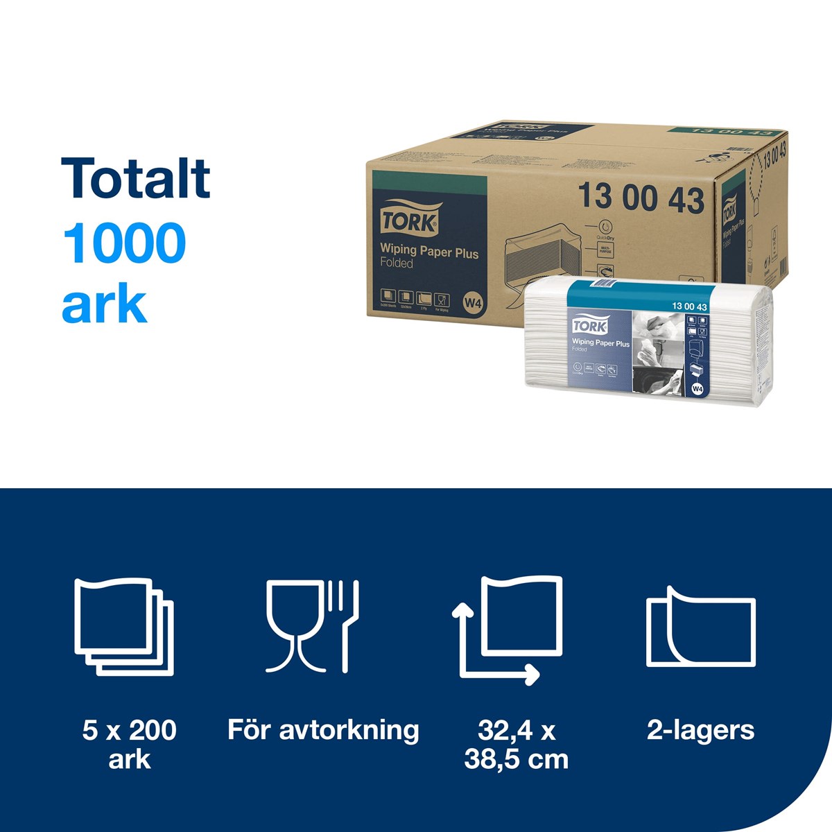 Avtorkningspapper Tork W4 38,5x10,8 cm 200/fp