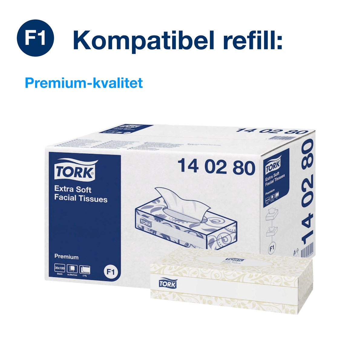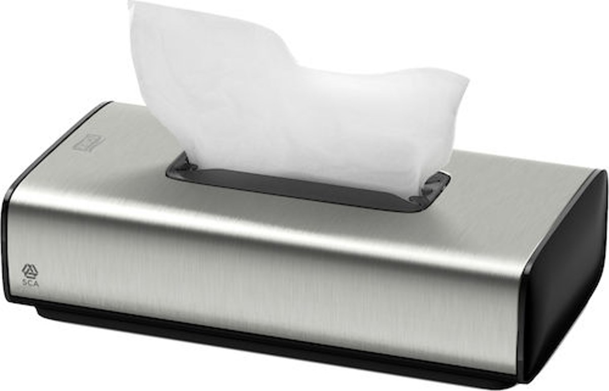 Kompakt dispenser som kan monteras på en vägg eller bänkyta Utmatning av en servett i taget förbättrar hygienen Enkel påfyllning Hölje som skyddar mot fingeravtryck håller den ren Döljer servettboxen och skapar ett bra intryck