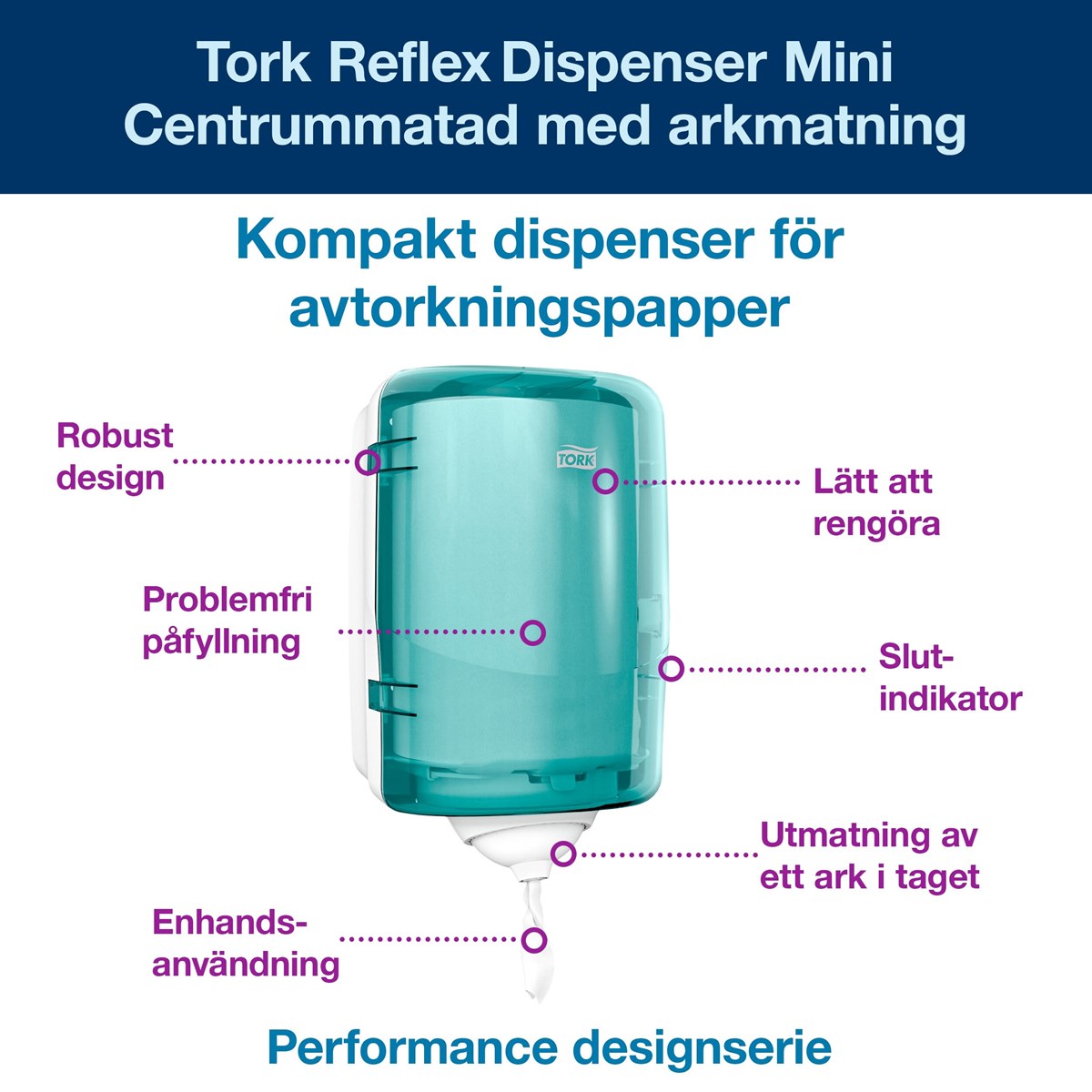 Handtorkhållare Tork Reflex Mini C-mat M3 turkos