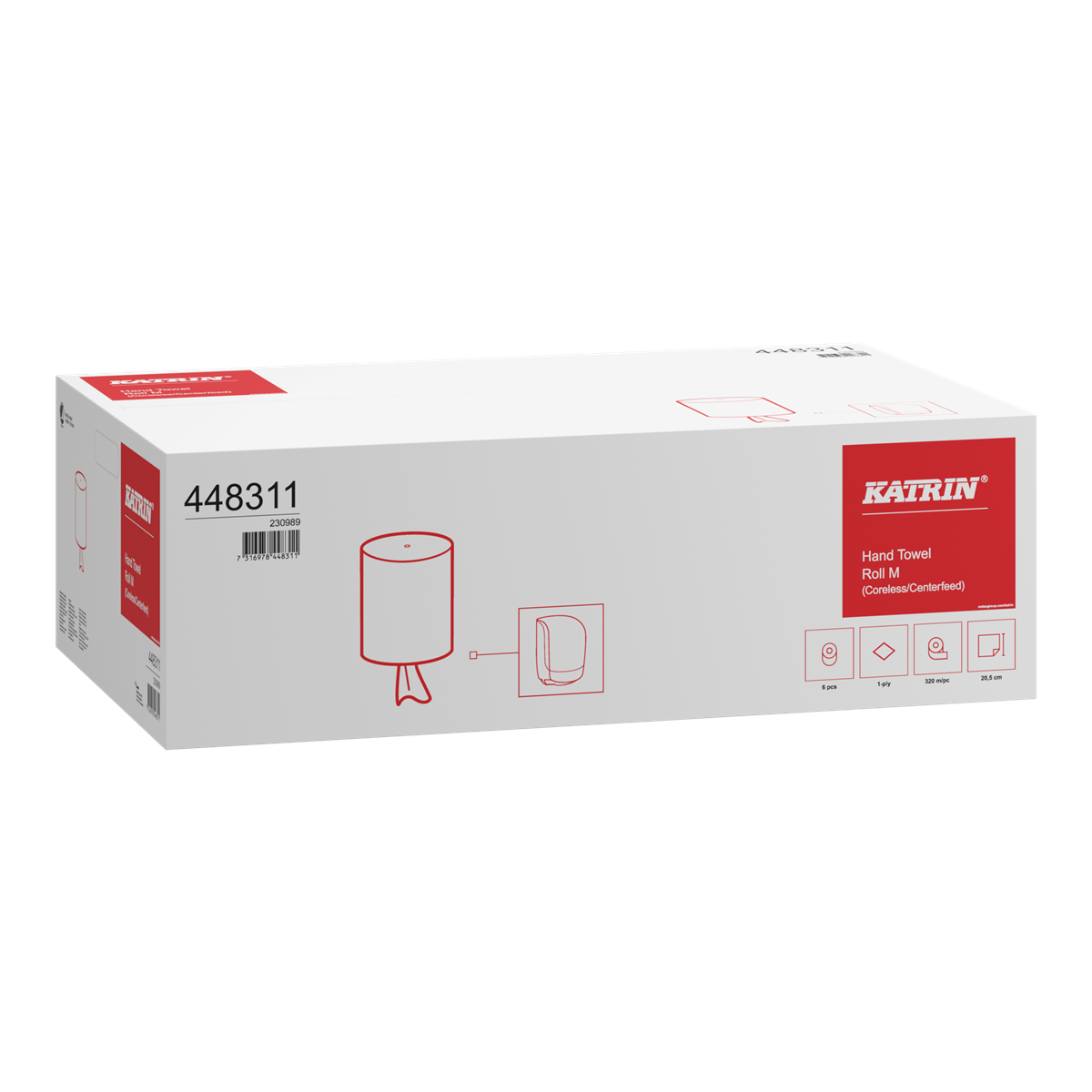 Torkrulle med bra egenskaper när det gäller styrka och absorption. Enkel avrivning, räcker med endast en hand. Rullen är hylslös, vilket förenklar påfyllnad av dispensern. Fiberråvara: Återvunna fiber och nyfiber. Sammansättningen styrs av produktkrav samt tillgång och kvalitet för optimal användning av råvaran. Hög kapacitet, 320 meter/rulle. 1-lagers, vit. Passar till: Katrin Torkrulle M dispenser.