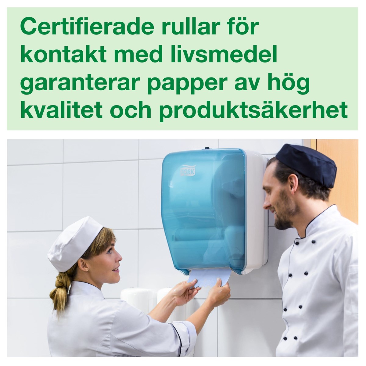 Rullar i enlighet med HACCP som är certifierade för livsmedelskontakt och anpassade för användning i utrymmen där livsmedel hanteras Klarar av mycket fukt och våta miljöer Maximal styrka, tjocklek och absorptionsförmåga Högkapacitetsrulle för färre påfyllningar