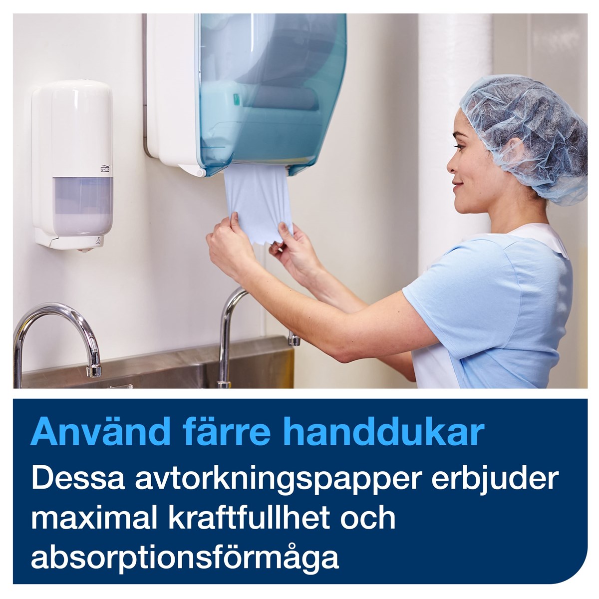 Tork avtorkningspapper är designat för bästa möjliga utmatning från systemet Tork Dispenser Tvättstation. Produkten är certifierad med HACCP International vilket garanterar att den är säker för användning i lokaler för livsmedelsbearbetning och matberedning. Extra lång rulle för matberedningsmiljöer med stora volymer – mindre underhåll sparar tid. Pappret är utformat för våta miljöer och behåller effektiviteten i miljöer med hög fuktighet vilket säkerställer hög grad av bekvämlighet och sparar tid. Mått: 250 m x 19,5 cm/rulle.