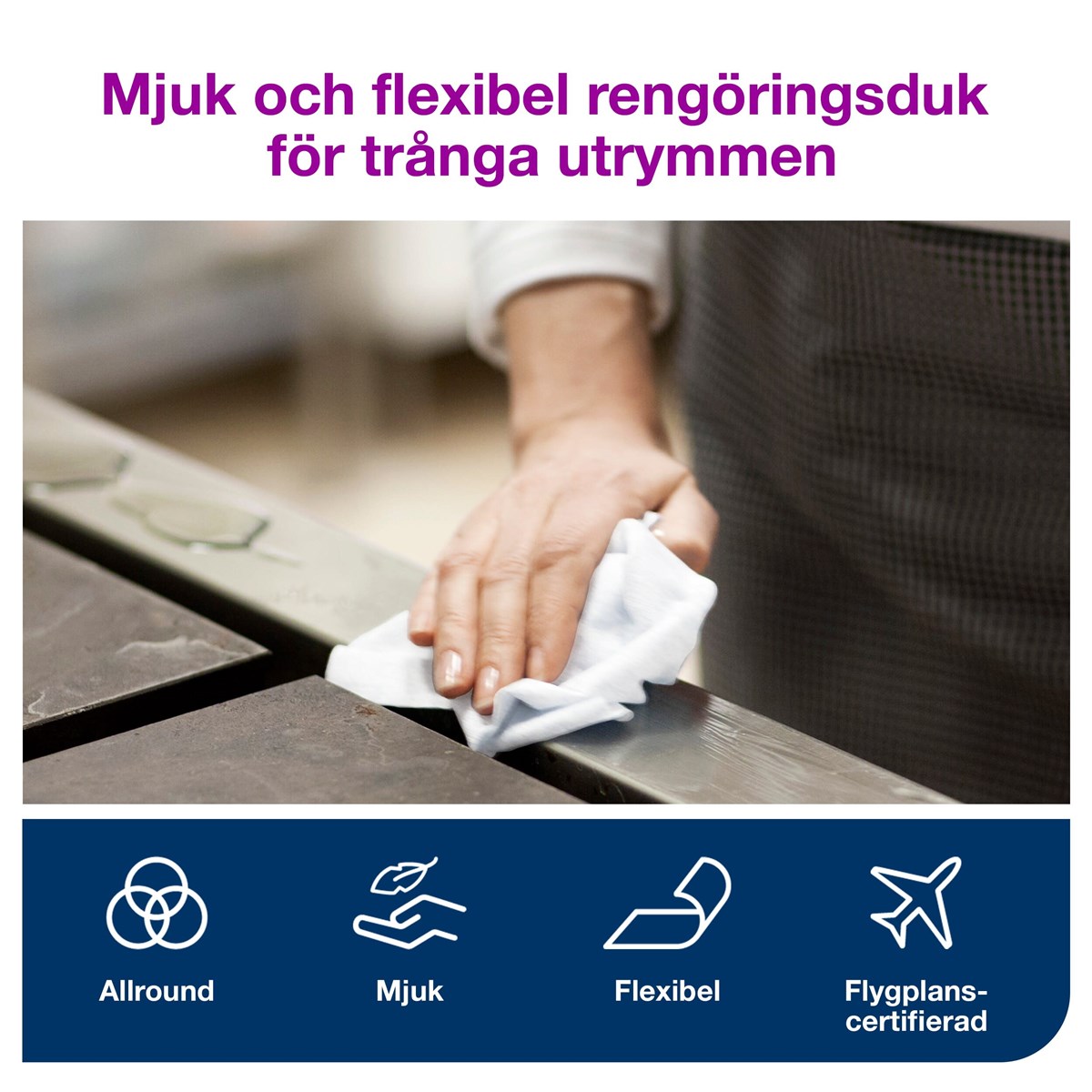 Mjuk och flexibel kvalitet som kan användas upprepade gånger Slitstark struktur och hög absorptionsförmåga för borttagning av olja, fett, smörjmedel och smuts Kan användas med de flesta lösnings- desinfektions- och rengöringsmedel