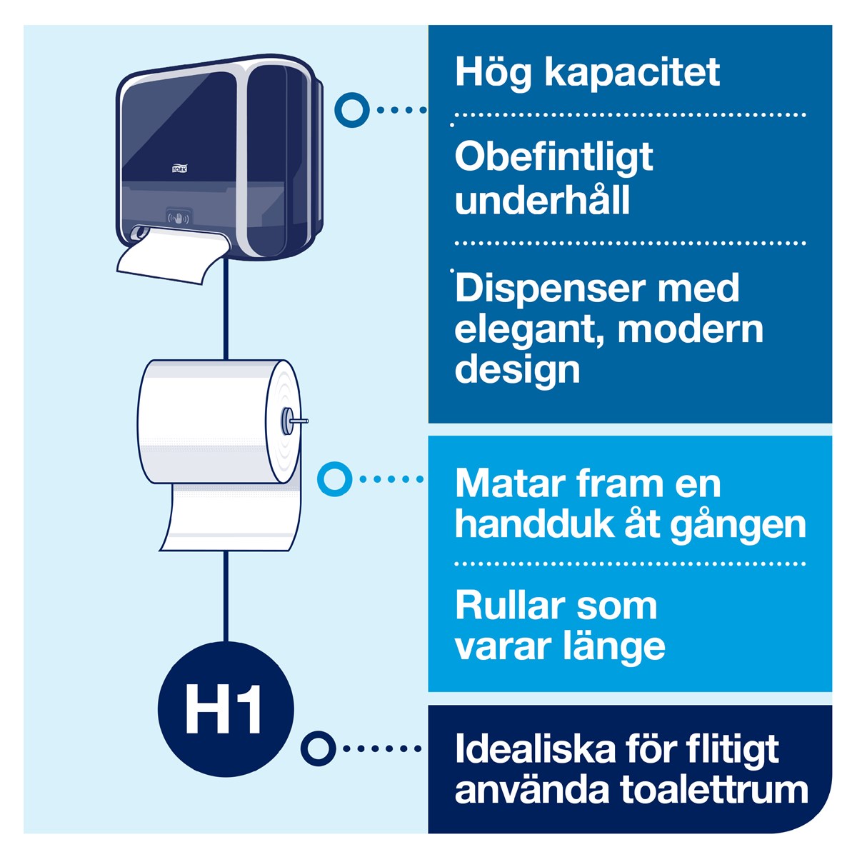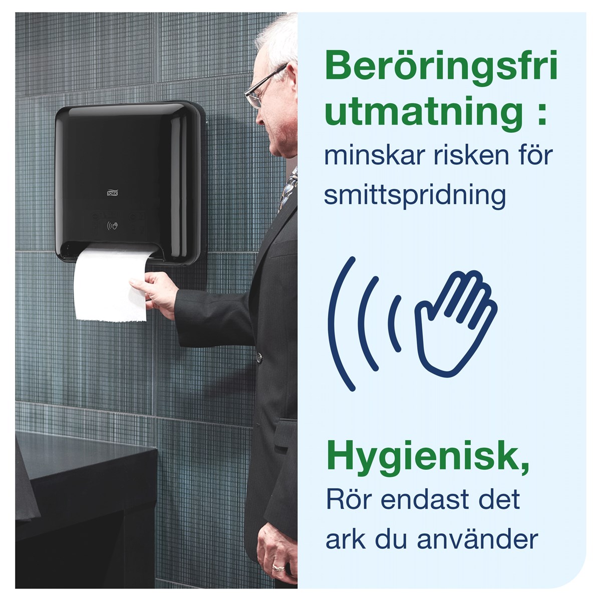 Tork Matic® Dispenser Handduk på rulle med Intuition™ sensor i Elevation-design ger dina gäster den bästa möjliga, beröringsfria handavtorkningen. Tork Elevation dispensrar har en funktionell, modern design som skapar ett bestående intryck hos dina besökare.