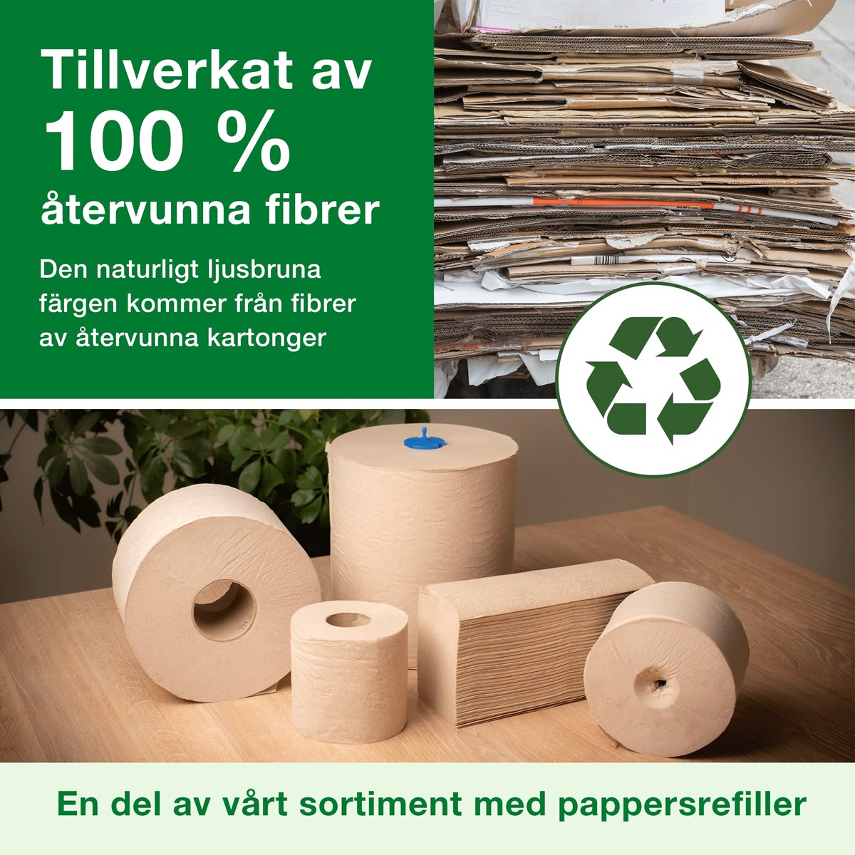 Handdukarna är skonsamma mot huden och förmedlar en känsla av hög kvalitet. Den ljusbruna färgen kommer från fibrer av återvunna kartonger. Inga färgämnen tillsätts vid tillverkningen. Kompatibel med Tork H2-dispensrar. Lämpliga för toalettutrymmen med medelhög besöksfrekvens. Dispensern får plats i små utrymmen och erbjuder dina gäster både komfort och hygien. Pappret tillverkas av 100 % återvunna fibrer. Mått: 24x21,3 cm. 180 st/bunt, 3780 st/förp.